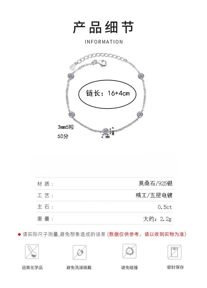 Name: Moissanite Bracelet Material: S925 si lver+moissanite Color: D color Style: Classic Fashion Chain length: 16+5 cm Stone clarity: VVS1 Please note: We promise a 100% pass rate with a diamond tester. The test result will be positive, and the brilliance will last a lifetim e. Package includes: 1 pcs bracelet , accompanied by a jewelry gift box, and GRA certificate. Method to verify moissanite: Please use a diamond tester for verification. If it cannot pass the test, it is 100% not moissanite. Our store guarantees that all jewelry sold is moissanite and will 100% pass the tester. No te: We will ship the parcel within 3 working days. Why Choose This Sterling Silver Moissanite Bracelet? (Certified Moissanite) Are you searching for a piece of jewelry that combines timeless elegance, exceptional brilliance, and unbeatable value? This stunning Sterling Silver Moissanite Bracelet is here to captivate your heart! Featuring dazzling Moissanite stones set in high-quality 925 Sterling Silver, this bracelet is more than just an accessory—it’s a symbol of so phistication , love, and individuality. What makes this bracelet truly special is the certification that guarantees the authenticity and superior quality of the Moissanite. Each stone is handpicked for its unparalleled clarity and brilliance, offering a sparkle that rivals even the finest diamonds. The Sterling Silver setting adds a touch of modern elegance and durability, making this bracelet perfect for any occasion, whether it’s a casual day out or a glamorous evening event. Here’s why this bracelet deserves a place in your jewelry collection: ✨ Certified Quality : Rest assured, your Moissanite is genuine, ethically sourced, and comes with a certification that guarantees its quality. ✨ Dazzling Brilliance : The precision-cut stones reflect light beautifully, creating a mesmerizing sparkle that turns heads. ✨ Timeless Design : The classic and elegant design makes this bracelet a versatile addition to any wardrobe. ✨ Affordable Luxury : Enjoy the look and feel of high-end jewelry without the hefty price tag. ✨ Perfect Gift : Whether for yourself or a loved one, this bracelet is a meaningful gift that symbolizes love, elegance, and thoughtfulness. Don’t just wear jewelry—wear confidence, beauty, and sophistication. This Sterling Silver Moissanite Bracelet is more than just an accessory; it’s a celebration of craftsmanship and elegance, designed to make you shine brighter than ever.