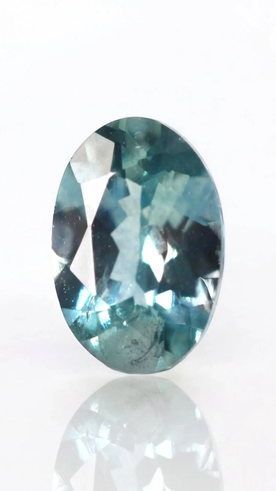 This 0.612ct oval Montana Sapphire is a natural gemstone that has been cut and polished to perfection. With its ideal cut grade, transparent clarity, and eye-clean clarity grade, this gemstone is a true standout. Its natural creation and absence of enhancement make it a unique and valuable addition to any collection. The gemstone, measuring 4.3mm in length and 4.5mm in width, has a beautiful green color that is sure to catch the eye. As a loose gemstone, it is perfect for use in jewelry and watches. This gemstone comes from the United States and is sold by a reputable dealer.