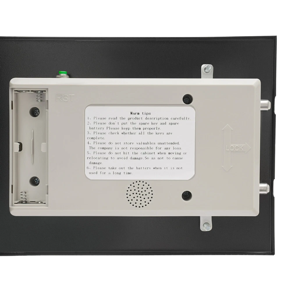 0.64ft³ Drop Box for Money&Mail Drop Slot Safe Cash Depository Safe Black W/Keys Description A high-quality safe can enhance your sense of security even more. This safe is made of sturdy steel and has strong reliability. The sturdy anti-theft lock can protect your valuable property, and the intelligent alarm mechanism allows you to keep an eye on its status at all times. Having this high-quality safe allows you to confidently go out. Key Features Build to Last: It is made of sturdy and thickened steel plates, and adopts laser cutting and galvanizing processes, with the advantages of high strength, rust resistance, and impact resistance, providing you with long-lasting and reliable protection. Large Capacity: The large size of 14*14*15.7 inches provides you with 0.64ft³ of space to help you organize important items and reduce clutter. The wide top can also be used for temporary storage of small items. Powerful Protection: The sturdy lock, 1mm thickened material, three types of unlocking keys((fingerprint, key, password)), and high-quality lock tongues provide your valuables with anti-theft protection. Intelligent Alarm Mechanism: If the password is entered incorrectly three times, an alarm will sound and it will automatically lock for 1 minutes. An alarm will also sound when the battery is low. The intelligent alarm mechanism enhances its security. Convenient to Use: The delivery port with a large opening angle allows you to deliver important items into the safe without opening the door, making it more convenient to use. Easy Installation: Thanks to its pre-drilled mounting holes and screws, you can mount this product on the wall or you can directly place it on the floor for more flexibility and convenience. Nice Appearance: The classic black and smooth lines give the product a sense of modernity and fashion, which can blend with most home and office decoration styles. Customer Service: Communication is the best way to solve problems. If you have any problems, please feel free to contact us. We will reply and solve the problem for you as soon as possible. Details Round Corners: The smooth corners can better ensure safety during installation and use. Practical Handle: The handle design on the delivery port makes it easy for you to open and drop items. Application It is an ideal choice for families, offices, hotels, schools, hospitals, shopping malls, banks, and restaurants to store valuable assets and belongings, such as money, check payments, files, documents, birth certificates, social security cards, coins, etc. Specification Color: Black Style: Modern Material: Steel Process: Laser Cutting, Galvanizing Shape: Rectangular Assembly Required: No Mounting Type: Wall Mount, Floor Mount Unlocking Methods: Password, Fingerprint, Key Capacity: 0.018m³/0.64ft³ Steel Board Thickness: 1mm/0.04in Battery Type: 4*AA Batteries(Not Included) Safe Inner Size: 33*33*25.4cm/13*13*10in Product Size: 35.2*35.5*40cm/14*14*15.7in Package Size: 42.2*42.2*47cm/16.61*16.61*18.5in Gross Weight: 8.5kg/18.74 lbs Net Weight: 7.6kg/16.76 lbs Package Included 1* Safe 4* Keys 1* Spare Battery Box 1* English Manual All Accessories for Assembly Notes 1.Please read the manual carefully before using it and pay attention to the dimensions of this safe before purchasing. 2.It is advisable to set the combination when the safe door is open. After setting the code, you should enter the new code several times. The door can be locked after confirmation. You can change the password to their specific password after purchasing a new safe. Please refer to the manual for the change method. 3.Please keep the spare key and spare battery(not included) in a safe place. 4.Please check that all keys are complete. 5.Please do not leave large amounts of cash and valuables unattended. 6.When moving and relocating, please do not hit the safe to avoid damage. 7.When not in use for a long time, please remove the battery from the battery box. 8.Please bring your own 4*AA batteries. 9.Please allow the slight color difference caused by the shooting light and 1-3cm error due to manual measurement, and make sure you do not mind before ordering. Payment Delivery details Terms of sales About us Contact us Payment We accept ebay payment 。 Fees such as import duties, taxes are not included in the item price or shipping costs. These charges are the buyer's responsibility. Delivery details Shipping: 2-9 working days to: USA Terms of sales We maintain high standards of excellence and strive for hundred percent customer satisfaction. Feedback is very important to us. We hope that you contact us immediately before you give neutral or negative feedback, so that we can address your concerns. It is impossible to address issues if we do not know about them! About us Your satis faction is our ultimate goal. We work hard to earn your trust and future business. Our certified technicians have tested each item before shipping. The unit comes with 1 year limited warranty on all manufacturing defects. a) If you receive a defective item, you may return it or ask for a discount. Please contact us within 14 days after you receive the package. b) What you returned must be intact and in its original packaging as re? u. Customer is responsible for shipping costs of the returned item. c) We will cover the cost of shipping back t with the shipping rate indicated in the registration page. We will send you a new unit or refund the full payment you paid. Thank you. Contact us Business Hour Business Hour: Monday To Friday: 8:30 AM to 5:00 PM (Beijing China time) Due to time zones, our reply to your questions may not be immediately. But within above working time, we will reply your email within 24 hours. If it's non-workdays, please kindly be patient and wait till Monday. Please contact us with ebay message. Please feel free to contact us if you have any questions. Monday To Friday: 8:30 AM to 5:00 PM (Beijing China time) Due to time zones, our reply to your questions may not