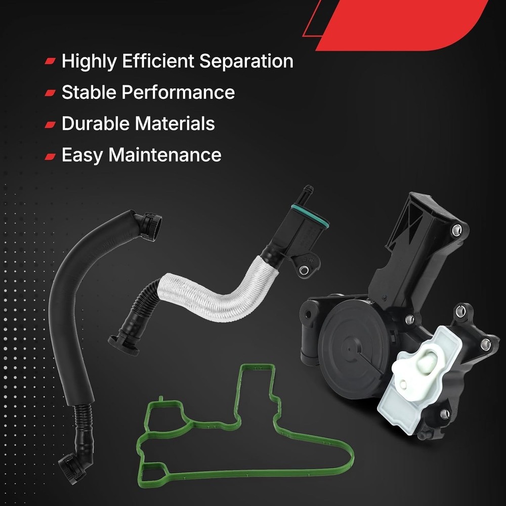 OEM Replacement ===== This PCV valve and valve breather hose kit is a direct replacement for OEM part numbers 06H103495AE, 06H103495J, and 06H103495AK. Please verify the compatibility of the part numbers with your specific vehicle before purchasing Precise Fit ===== Specifically designed for 2012-2018 Audi A4 A5 A6 Q3 Q5 Quattro Allroad 2.0L models, this kit provides a perfect fit and compatibility with the specified vehicle Efficient Oil Separation ===== This PCV valve engine crankcase vent valve oil separator effectively separates oil from the crankcase gases, preventing oil contamination in the intake system and ensuring clean airflow High-Quality Construction ===== Made from premium materials, this kit offers excellent durability and reliability, ensuring long-lasting performance and resistance to heat and oil degradation Comprehensive Kit ===== This kit includes both the PCV valve and the valve breather hose, providing a complete solution for maintaining the proper function of the crankcase ventilation system