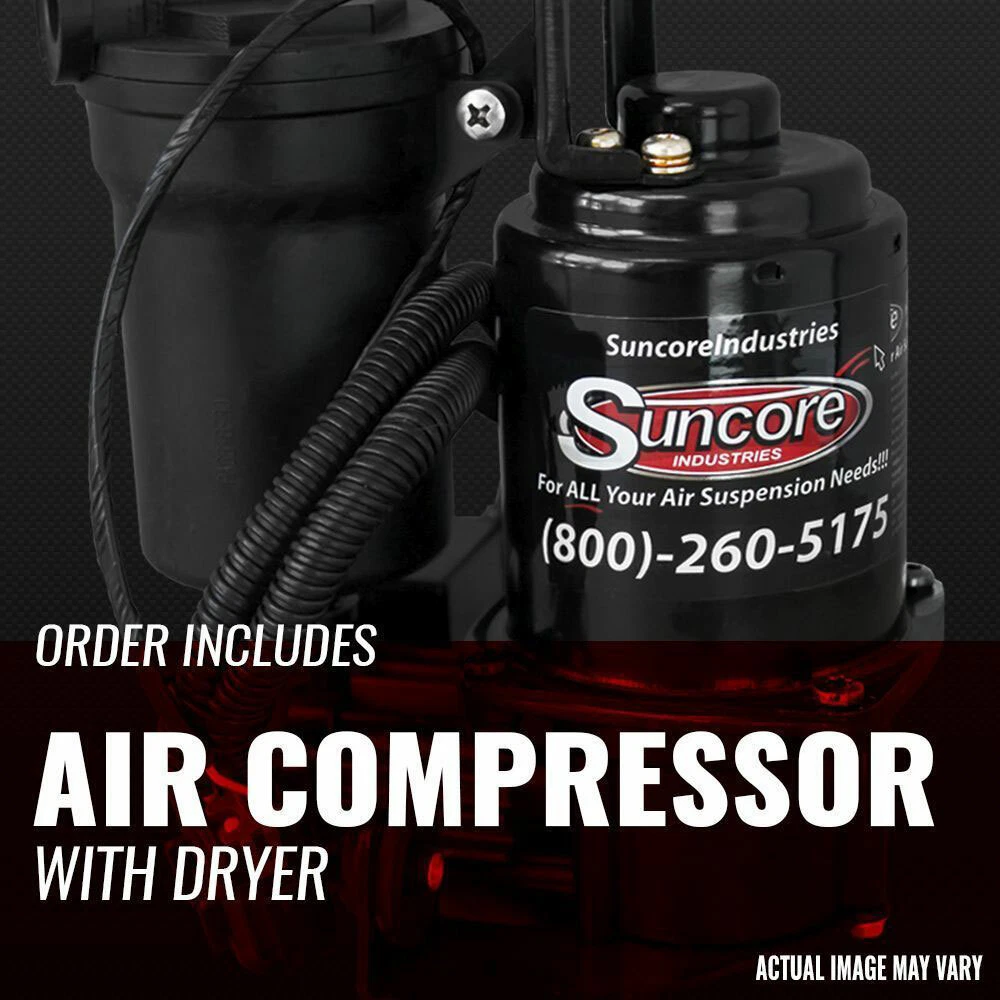 Air Suspension Specialist 07-13 Chevrolet Suburban 2500 Z55 Rear Electronic Air Shocks & Compressor Kit Part # 151G-01-20-KIT Condition: New Fits: 2007 - 2013 Chevrolet Suburban 2500 KEY FEATURES: Saves You Money Compared To OEM/Dealer Prices Suspension Air Compressor Vehicle Specific Original Equipment Style Replacement Limited 1 Year Warranty Brand NEW IMPORTANT FITMENT NOTES (MUST READ): New Includes Solenoid Resistor To Bypass Electronic Suspension With Autoride Leveling Suspension INCLUDES (MUST READ): (1) Air Suspension System PRODUCT DETAILS & FITMENT INTERCHANGE DATA SHIPPING & WARRANTY ABOUT Suncore’s Air Suspension System 151G-01-20-KIT for your 2007 - 2013 Chevrolet Suburban 2500 is a direct replacement compressor for your existing adaptive air suspension system, each air supply compressor is manufactured to meet optimal ride specifications. SPECIFICATIONS Part # 109G-14-R :: Rear :: Air Suspension Shock Extended Length OEM Shock Stroke OEM Collapsed Length OEM WARNING CA Proposition 65 No Part # 151G-20 :: N/A :: Air Suspension Compressor WARNING CA Proposition 65 No DETAILED VEHICLE FITMENT Year Make Model Submodel Position Drive Cyl Liter Body Notes 2013 Chevrolet Suburban 2500 LS Rear 4WD 8 6.0 Sport Utility New; Includes Solenoid Resistor To Bypass Electronic Suspension; With Autoride Leveling Suspension 2013 Chevrolet Suburban 2500 LS Rear RWD 8 6.0 Sport Utility New; Includes Solenoid Resistor To Bypass Electronic Suspension; With Autoride Leveling Suspension 2013 Chevrolet Suburban 2500 LT Rear RWD 8 6.0 Sport Utility New; Includes Solenoid Resistor To Bypass Electronic Suspension; With Autoride Leveling Suspension 2013 Chevrolet Suburban 2500 LT Rear 4WD 8 6.0 Sport Utility New; Includes Solenoid Resistor To Bypass Electronic Suspension; With Autoride Leveling Suspension 2012 Chevrolet Suburban 2500 LS Rear RWD 8 6.0 Sport Utility New; Includes Solenoid Resistor To Bypass Electronic Suspension; With Autoride Leveling Suspension 2012 Chevrolet Suburban 2500 LS Rear 4WD 8 6.0 Sport Utility New; Includes Solenoid Resistor To Bypass Electronic Suspension; With Autoride Leveling Suspension 2012 Chevrolet Suburban 2500 LT Rear 4WD 8 6.0 Sport Utility New; Includes Solenoid Resistor To Bypass Electronic Suspension; With Autoride Leveling Suspension 2012 Chevrolet Suburban 2500 LT Rear RWD 8 6.0 Sport Utility New; Includes Solenoid Resistor To Bypass Electronic Suspension; With Autoride Leveling Suspension 2011 Chevrolet Suburban 2500 LS Rear 4WD 8 6.0 Sport Utility New; Includes Solenoid Resistor To Bypass Electronic Suspension; With Autoride Leveling Suspension 2011 Chevrolet Suburban 2500 LS Rear RWD 8 6.0 Sport Utility New; Includes Solenoid Resistor To Bypass Electronic Suspension; With Autoride Leveling Suspension 2011 Chevrolet Suburban 2500 LT Rear 4WD 8 6.0 Sport Utility New; Includes Solenoid Resistor To Bypass Electronic Suspension; With Autoride Leveling Suspension 2011 Chevrolet Suburban 2500 LT Rear RWD 8 6.0 Sport Utility New; Includes Solenoid Resistor To Bypass Electronic Suspension; With Autoride Leveling Suspension 2010 Chevrolet Suburban 2500 LS Rear RWD 8 6.0 Sport Utility New; Includes Solenoid Resistor To Bypass Electronic Suspension; With Autoride Leveling Suspension 2010 Chevrolet Suburban 2500 LS Rear 4WD 8 6.0 Sport Utility New; Includes Solenoid Resistor To Bypass Electronic Suspension; With Autoride Leveling Suspension 2010 Chevrolet Suburban 2500 LT Rear 4WD 8 6.0 Sport Utility New; Includes Solenoid Resistor To Bypass Electronic Suspension; With Autoride Leveling Suspension 2010 Chevrolet Suburban 2500 LT Rear RWD 8 6.0 Sport Utility New; Includes Solenoid Resistor To Bypass Electronic Suspension; With Autoride Leveling Suspension 2009 Chevrolet Suburban 2500 Base Rear 4WD 8 6.0 Sport Utility New; Includes Solenoid Resistor To Bypass Electronic Suspension; With Autoride Leveling Suspension 2009 Chevrolet Suburban 2500 LS Rear 4WD 8 6.0 Sport Utility New; Includes Solenoid Resistor To Bypass Electronic Suspension; With Autoride Leveling Suspension 2009 Chevrolet Suburban 2500 LS Rear RWD 8 6.0 Sport Utility New; Includes Solenoid Resistor To Bypass Electronic Suspension; With Autoride Leveling Suspension 2009 Chevrolet Suburban 2500 LT Rear RWD 8 6.0 Sport Utility New; Includes Solenoid Resistor To Bypass Electronic Suspension; With Autoride Leveling Suspension 2009 Chevrolet Suburban 2500 LT Rear 4WD 8 6.0 Sport Utility New; Includes Solenoid Resistor To Bypass Electronic Suspension; With Autoride Leveling Suspension 2008 Chevrolet Suburban 2500 LS Rear 4WD 8 6.0 Sport Utility New; Includes Solenoid Resistor To Bypass Electronic Suspension; With Autoride Leveling Suspension 2008 Chevrolet Suburban 2500 LS Rear RWD 8 6.0 Sport Utility New; Includes Solenoid Resistor To Bypass Electronic Suspension; With Autoride Leveling Suspension 2008 Chevrolet Suburban 2500 LT Rear 4WD 8 6.0 Sport Utility New; Includes Solenoid Resistor To Bypass Electronic Suspension; With Autoride Leveling Suspension 2008 Chevrolet Suburban 2500 LT Rear RWD 8 6.0 Sport Utility New; Includes Solenoid Resistor To Bypass Electronic Suspension; With Autoride Leveling Suspension 2007 Chevrolet Suburban 2500 LS Rear 4WD 8 6.0 Sport Utility New; Includes Solenoid Resistor To Bypass Electronic Suspension; With Autoride Leveling Suspension 2007 Chevrolet Suburban 2500 LS Rear RWD 8 6.0 Sport Utility New; Includes Solenoid Resistor To Bypass Electronic Suspension; With Autoride Leveling Suspension 2007 Chevrolet Suburban 2500 LT Rear RWD 8 6.0 Sport Utility New; Includes Solenoid Resistor To Bypass Electronic Suspension; With Autoride Leveling Suspension 2007 Chevrolet Suburban 2500 LT Rear 4WD 8 6.0 Sport Utility New; Includes Solenoid Resistor To Bypass Electronic Suspension; With Autoride Leveling Suspension 2007 Chevrolet Suburban 2500 LTZ Rear 4WD 8 6.0 Sport Utility New; Includes Solenoid Resistor To Bypass Electronic Suspension; With Autoride Leveling Suspension 2007 Chevrole