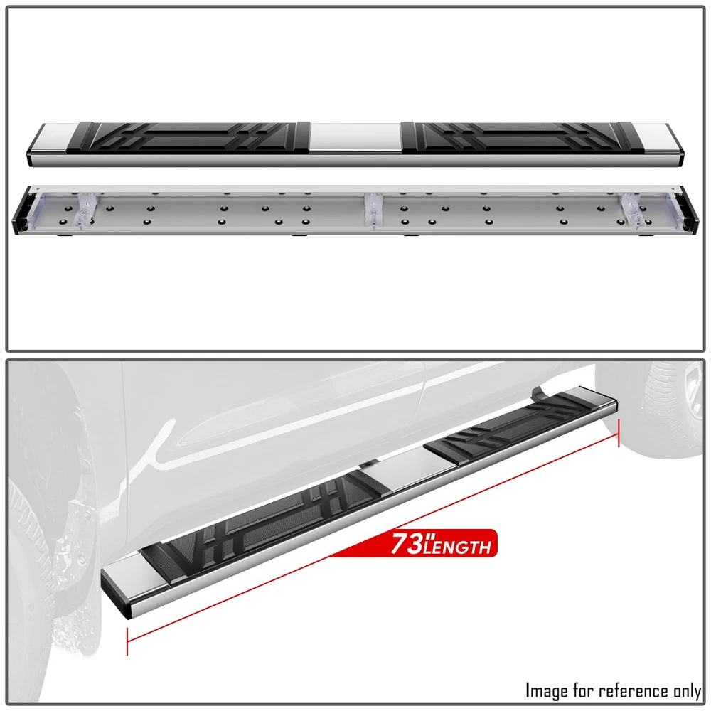 gtin13: Does not apply Number of Pieces: 2 Width: 6.5" Maximum Weight Capacity: 350 Lbs Interchange Part Number: 2007 2008 2009 2010 2011 2012 2013 2014 2015 2016 2017 2018 2019 Brand: Speed Daddy Shape: Rectangular Fitment Type: Performance/Custom Manufacturer Part Number: SDD-STEPBUTD07T1E Style: Flat Board Running Board Features: Fixed Color: Chrome / Black Type: Running Board Items Included: Running Boards, Mounting Brackets California Prop 65 Warning: This product contains chemicals known to the State. Finish: Polished Placement on Vehicle: Left, Right UPC: Does not apply Superseded Part Number: SDD-STEPBUTD07T1E Material: Stainless Steel / Mild Steel / ABS Plastic Universal Fitment: No Item Length: 73" OE/OEM Part Number: 07 08 09 10 11 12 13 14 15 16 17 18 19 20 21