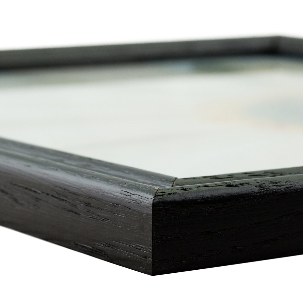 This brand new picture frame is manufactured in the USA at our facility in Ithaca, Michigan using the best materials and tools available. Please review the product listing details of the frame selection you have made. Our picture frames SMALLER than 12x18 Inch (inside dimensions) are carefully and completely assembled with GLASS facing and a durable backing with machine-cut, low profile wall hangers for both horizontal and vertical hanging. Our picture frames will compliment any space that you hang them in, they make great gifts and they will protect and display your photographs and artwork for years to come. If you have any questions or comments, please do not hesitate to us. Feel free to visit our storefront and seller info pages to browse our extensive selection of frames, read customer feedback or review our policies and info. At the end of the day we want you to be completely happy with your purchase. Be sure to add us to your list of favorites so you can easily find us the next time you need a quality picture frame. Thank you for shopping with us. We are and we are framing the world.customer at a time. Traditional style; black semi-gloss stain finish with visible wood grain Frame includes: glass, rigid black backing and pre-attached stamped hanging hardware Frame holds a 8 inch by 12 inch photo/print (viewable area reduced by .25" on each side due to frame lip) **IMPORTANT** FRAME MOULDING IS THREE-QUARTERS OF AN INCH WIDE. THIS IS A THIN PICTURE FRAME.; comprised of solid Ash wood Frame is designed for WALL HANGING only (hanging hardware allows for portrait or landscape orientation)