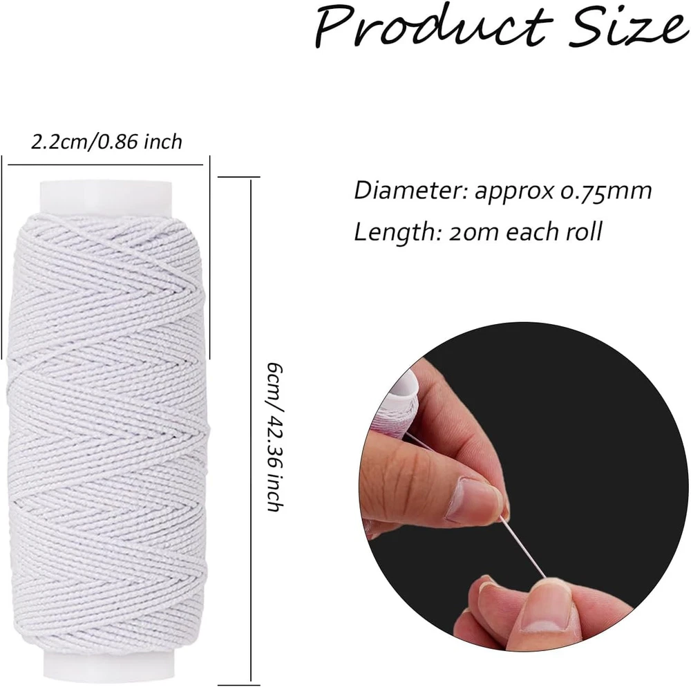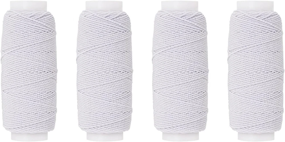 0.75mm Shirring Elastic Craft Cord, 20m Each Spool, Sewing 4pc White