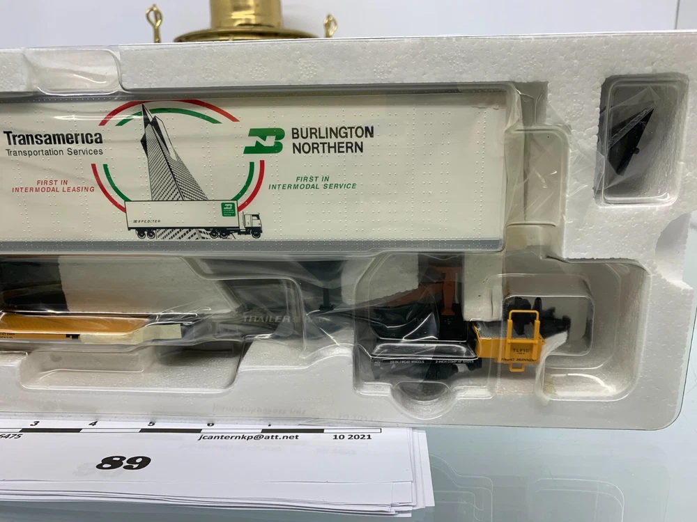Atlas TransAmerica Burlington Northern 45' Pine Trailer & TTUX Flat Car #140150 New Still Taped Something Appears Loose in Box from Couplers Did Not want to Untape at this Time If Anyone is interested I can open and take pictures Painted Plastic O Scale 1:48 3 Rail Please Zoom In on Photos From Someone's Estate Everything Is how we Received from the Estate Never to be produced again Rare ****** Please read important information ******THANK-YOU Transparency. Check all pictures closely. 1. eBay does not allow for insurance coverage on shipping, particularly on items over $200, s o if you need Insurance on your purchased Item ….PLEASE….. Request and wait for an invoice from us so we can calculate the shipping with insurance for a proper Shipping price. 2. eBay charges a 14% Fee to all eBay sellers on the sales (final value) price. 3. eBay charges sellers a 14% fee on all shipping cost and insurance. So if shipping is $10, eBay charges the seller an additional $ 1.40 with the final shipping cost being $11.40. The same math is used on shipping insurance cost. 4. eBay charges sellers a 14% fee on your states sales tax. Let’s just say that you buy $1000 item and your state sales tax is 7% like it is in Indiana. The sales tax would be $70 on that purchase. eBay charges seller 14% on the sales tax to the ebay Seller is an amount of $9.80 total final charge of $79.80 So if the difference between estimated shipping, and final value of shipping is returned to the buyer, the Seller DOES NOT receive that 14% Refund on the returned amount from eBay, THANK-YOU transparency and honesty is important. 5. If you are purchasing more than one item, we do combine shipping on estimated shipping cost. Please don't pay until we invoice you. If it’s a fixed shipping price on your item, please go ahead and pay because we pay the additional amount on the shipping excluding insurance and there will be no need for an invoice or delay on payment on your end.. 6. We Do Not ship to Post Office Boxes Without prior approval . We Do Not ship to any companies that ship overseas in bulk. We have found huge issues and mostly scammers. Use this system . If you accept full responsibility for loss or damage, we will consider it. Message us prior to biding for approval. 7. If you have less than 20 favorable purchases. Please contact us before bidding. 8. The major part of our description is the pictures, zoom in and look at them closely. Look over every inch of the photos. 9. All items are preowned Most of the items we sell are 20-50 years old and are from estates All models have some minor tarnish or small items are unsoldered. AGAIN ZOOM IN ON PICTURES 10. Email us or call us, if you have any question. 317-965-6475. On YouTube check out P48 eight by Terry Terrance. 11. We will do everything to assist with any unforeseen shipping problems. Once it leaves our shipping location, it is completely out of our hands. Ebay has a tracking number. We ship all items using eBay‘s system. The tracking number is with eBay system. Check it out and follow up with that carrier once it leaves our location, we are not responsible for it. Thank you Check out all of my other great listings. Have a good day Jim Canter .