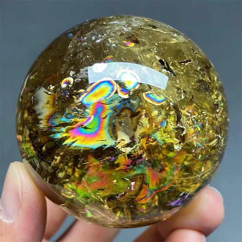 0.94lb Natural Citrine Quartz Sphere Rainbow Crystal for Energy Healing