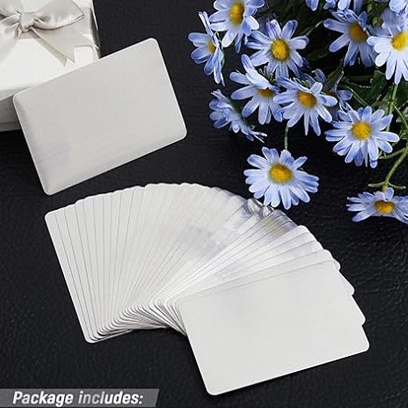 Description: Made of aluminium alloy, high quality, solid and durable, non-toxic and healthy, not easy to aging. Not easy to be folded or bent, smooth and flat. The metallic business card make your identity distinguished, and look elegant. Features: Made of aluminium alloy, high quality, solid and durable, non-toxic and healthy, not easy to aging. Not easy to be folded or bent, smooth and flat. The metallic business card make your identity distinguished, and look elegant. Light and never rust, a good tool to give out at the first meet. It has excellent quality and exquisite workmanship, it has many different color, suit for your various demand. Specifications: Condition: 100% Brand New and High Quality Material: Aluminium Alloy Color: Sliver Size(L * W * T): Approx. 86 * 54 * 0.22mm/ 3.4 * 2.1 * 0.01inch Weight: 116g Package Including: 1 x Set Business Card ( 50Pcs ) Please Note: 1. Because of manual measurements, please allow 1-3cm errors and ensure that you do not mind before ordering. 2. Please understand that color may exist as a different position of image. 3. Due to manual packaging, 50PCS/package, please allow a small amount of error. On May 23, 2024 at 21:18:50 PDT, seller added the following information: