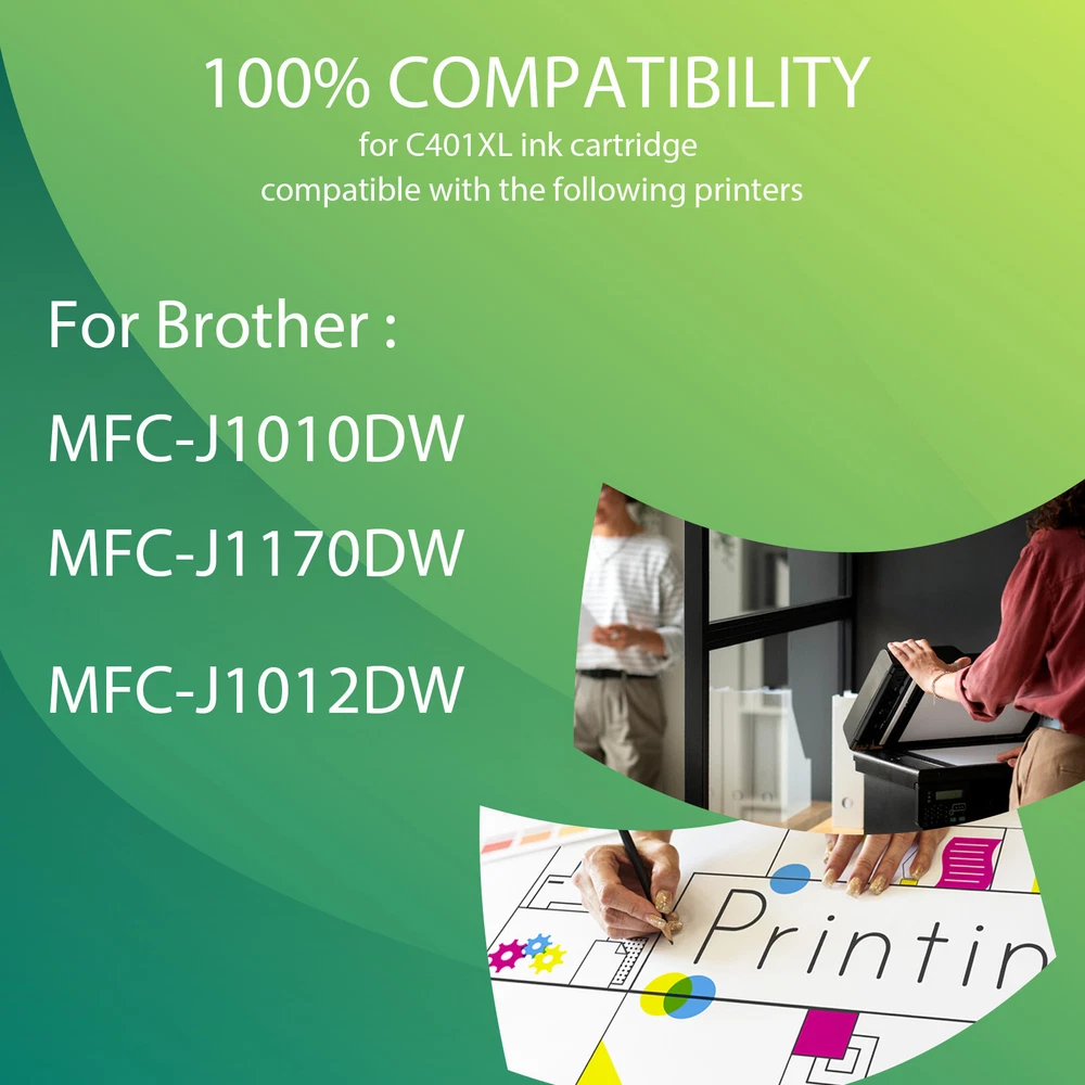 Store Home New Arraival Add to favourite View Feedback Contact Us SPECIFICATIONS/FEATURES Contents: For Brother C401XL-BCMY-4PK Ink Type: Multicolor Cartridge Type: New Package contents: - 1 x Black C401XL Super High Yield - 1 x Cyan C401XL Super High Yield - 1 x Magenta C401XL Super High Yield - 1 x Yellow C401XL Super High Yield Page Yield: 500 pages per C401XL black cartridge 500 pages per C401XL color cartridge ( determined by 5% page coverage) Compatible With the Brother printers MFC-J1010DW MFC-J1170DW MFC-J1012DW Warranty 100% satisfaction guaranteed. Install Instructions: Step 1 : Take off the protective clip. Step 2 : Remove the static protective vinyl tape. Step 3 : Wipe the ink cartridge chip with alcohol pad. Step 4 : Install the cartridge to the printer.Some printers must be black/color ink cartridges match use. Please clean the printhead 1-2 times once a month.If the printer does not work after installing the cartridge, clean the chip contacts of the cartridges with a rubber eraser or cotton swab. Take care not to touch the ink nozzles on the bottom of the cartridge.