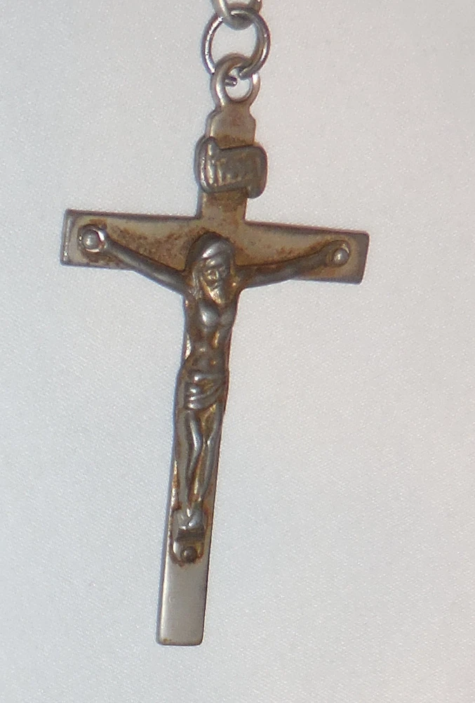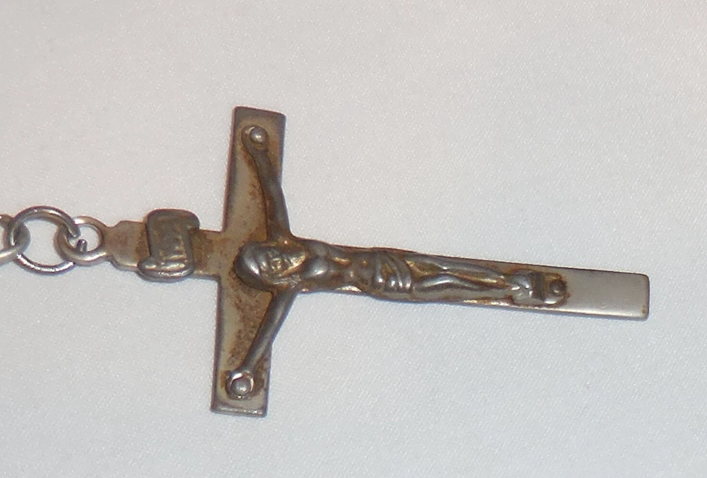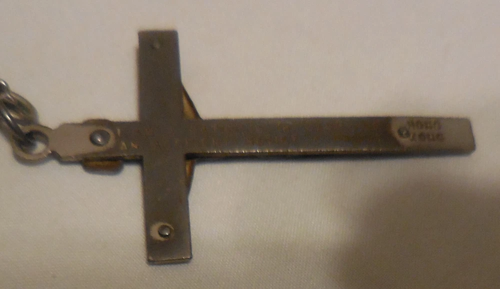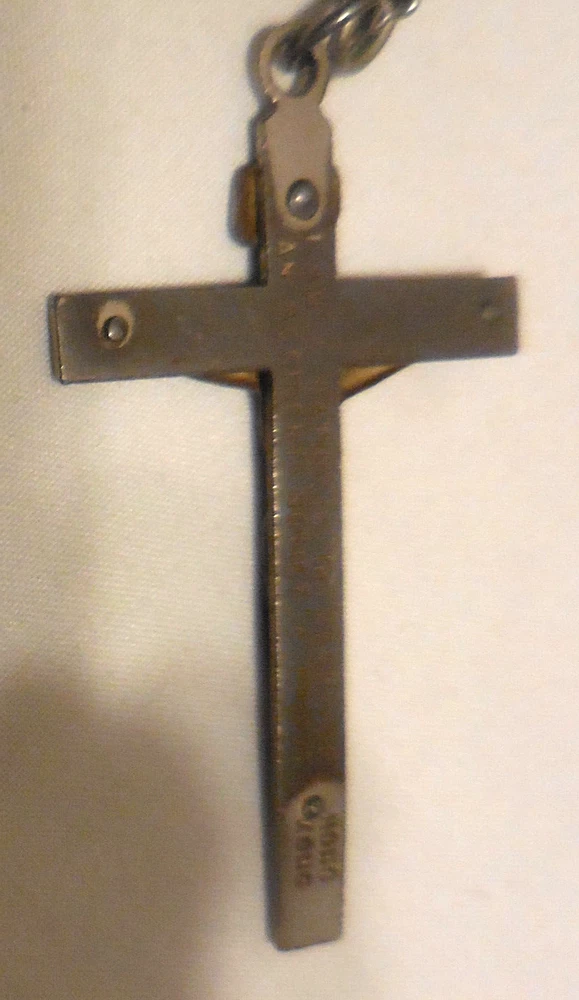 Back Says I am A Catholic in case of an Emergency Notify a priest. needs cleaned up. dirt and marks. discoloring on back. See photos for condition. Look under Condition description area for specifics.If you are buying multiple items,save them in your cart and make one payment and they will ship together.N20 . USPS sets shipping prices and we always send cheapest unless requested otherwise. We DO NOT ship to any other address besides your approved shipping address on ebay. Free shipping :ONLY when listed for free shipping,applies to 48 continental United States only,ask for quote if anywhere else . ALL SALES : All items will be shipped out within 24 hours(no weekends and holidays) If you are locally picking up an item you must mark it as such before you buy it and give us the code number supplied by ebay when you pick it up.If you do not mark it for local pick up,it must be shipped. ASK QUESTIONS,DO NOT ASSUME. IF IT IS NOT IN THE DESCRIPTION AND PHOTO ,IT IS NOT INCLUDED. I ship USPS and Fed ex only.