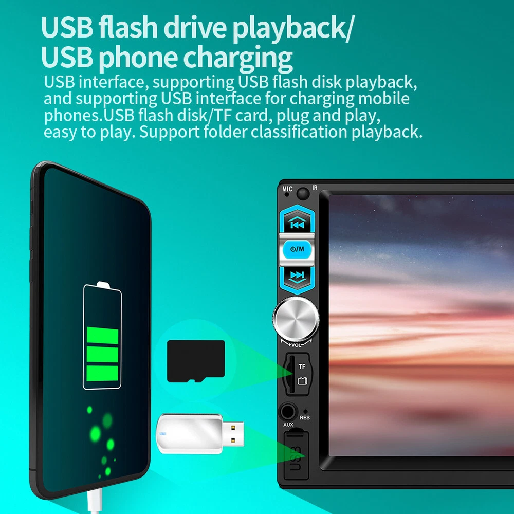 Product Description 1 Din Car Radio 7in Touch Screen Car MP5 Player For Wired Carplay&Android Auto FM Mirror Link Audio Stereo Multimedia Player With 8LED Rear Camera Note:Please check Radio's size with car dashboard before buying !! Please note: This is a Wince radio that does not support WIFI&GPS Option: Wired Carplay&Android Auto Specifications: Packaging size: 22 * 12 * 13CM Screen size: 7 inches System: wince Interconnection: Wired Carplay Interconnection Wired Android Auto Interconnection Mobile Interconnection Video playback: RMVB/RM/FLV/3GP/MPEG/DIVX/XVID/DAT/VOB/AVI/MP4 Audio playback: DIS, MP3, WMA, ACC, OGG, WAV, RA, AC3, MP2, AMR, etc. Power amplifier chip: 7388 Mobile phone charging: supports USB mobile phone charging Bluetooth: support USB drive playback: supported TF card playback: supported AUX: Support Steering wheel control: supported Reverse view priority: supported Mobile internet: support USB interface: supported Features: ●Carplay: You can use the connection to Carplay, connect to your Apple phone, access phone contacts, emails, notifications, map navigation, music, videos, and other information, and achieve voice control. ●Android Auto, connected using a USB data cable. ●Screen: 7-inch high-definition video playback ●Image linkage: Supports Android/iPhone image linkage, which can be synchronized to the onboard screen through the original USB cable of the phone. It can support Apple version 13.4 and Android version 10.1. The above version may not support mobile phones, and the software needs to be upgraded after factory debugging ●Equipped with built-in Bluetooth function, can connect to mobile phones, make hands-free calls, make driving safer, and play Bluetooth music ● FM radio: can listen to real-time road conditions, news broadcasts, weather forecasts, and other 18 preset storage functions of the receiver ● Support steering wheel control function: use the car steering wheel to quickly switch the functions you want, making it more convenient ● Rear view camera input function : Support ,included 8LED camera ●Seven color backlight settings: supports seven colors of backlight, you can choose from ●Decorate your car with your favorite colors in the settings menu ●The AUX audio input interface supports external MP3 players, mobile phones, music players, etc. ●Please note that the MP5 player does not support WIFI and GPS Package Included: 1x Host 1x Remote Control 1x Power Wire 1x Manual 1x 4LED Rear Camera Payment Returns Contact Us Shipping We accept payment by PayPal only ! Payment should be completed within 5 days after buyer places the order,or else an unpaid case will be opened in order to cancel the transaction. If you can not pay in time, please contact us. e-check from PayPal will only be processed once the payment clears. All of the items will be shipped to buyer's EBAY address,please confirm your address on Ebay before you buy.Your order will be usually shipped out the same or next business days once the payment is made and cleared. 30-day Warranty with Exchange for defective, malfunctioned, incorrect or parts-missing items. Please notify us and return the item with all parts and accessories packed and marked "FOR EXCHANGE" within 14 days of receipt. If defective, malfunctioned or parts-missing items are no longer available, a refund may be issued. All returning postage costs will be the responsibility of the buyers under all circumstances. If you encounter any problems about anything, please feel free to contact us and we will do our best to assist you solve the issue. If you are not satisfied in anyway, please feel free to let us know and give us a second chance to correct it before you decide to leave any neutral or negative feedback. Please contact us through eBay link if you have any questions. We will reply you within 24- 48 hours. Please check you spam mail if no response for 48 hours. All items will be checked before packing. All items are new and of high quality. Item will be shipped within 1 business days upon receipt of payment, excluding weekends and public holidays. If to USA,we will ship your order by USPS,it will take about 8-12 working days to you,and you can track it on line. If to other country,we will ship your order by China Post or Singapore Registered Air Mail,it will take about 14-21 working days to you,you aslo can track it on line. Delivery time is about 14-28 business days and it may take up to 8 weeks . Payment We accept payment by PayPal only ! Payment should be completed within 7 days after buyer places the order,or else an unpaid case will be opened in order to cancel the transaction. If you can not pay in time, please contact us. eCHECK from PayPal will only be processed once the payment clears. All of the items will be shipped to buyer's EBAY address,please confirm your address on Ebay before you buy.Your order will be usually shipped out the same or next business days once the payment is made and cleared. Returns 30-day Warranty with Exchange for defective, malfunctioned, incorrect or parts-missing items. Please notify us and return the item with all parts and accessories packed and marked "FOR EXCHANGE" within 14 days of receipt. If defective, malfunctioned or parts-missing items are no longer available, a refund may be issued. All returning postage costs will be the responsibility of the buyers under all circumstances. Contact Us If you encounter any problems about anything, please feel free to contact us and we will do our best to assist you solve the issue. If you are not satisfied in anyway, please feel free to let us know and give us a second chance to correct it before you decide to leave any neutral or negative feedback. Please contact us through eBay link if you have any questions. We will reply you within 24- 48 hours. Please check you spam mail if no response for 48 hours. Shipping All items will be checked before packing. All items are new and of high quality. Item will be shipped within 1 