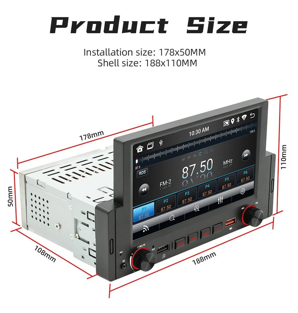 Product Description 1 Din Car Radio W/12LED Camera Android 10.1 Bluetooth Handsfree Wifi GPS USB Mirror Link 6.2in Multimedia Player 2+32G Head Unit Support CarPlay Android-Auto Add our listing to Watchlist Or Add to Cart , you will get more discount Performance parameters Type: Android navigation machine System: Android 10.1 Software solution: Jing Anchi Radio IC: FM 87.5~108.0MHz Power amplifier IC: YD7388 Output power: 60Wx4 Working voltage: 12~14.4V Working temperature: - 10~60 ℃ Bluetooth version: 4.0 (default name: Car BT) Wifi frequency:2.4GHz GPS signal:GPS+GLONASS+Beidou CPU:A7 1.1GHz x 4 Operating memory 2G (DDR3) Memory:32G Display resolution: 800x480 Screen size: 6.2 inches Installation size:178x50MM Face shell size: 188x110MM Host depth: 108MM Functional parameters Mobile internet: support Reverse camera:support (camera optional) Play video warning: support Steering wheel control: supports key learning Video output: support Offline map: is not supported DASH CAM: support (optional) GPS navigation: support USB: front USB charging (red)+front USB2.0 reading (black)+rear USB2.0 reading TF card: does not support Reset button: support Audio output: 2 channels (left channel+right channel) Video output: 2 channels Audio input: is not supported Rear external microphone input: support (optional) Video input: 1 channel Reverse video input: 1 channel Audio format: MP3/WMA/WAV/APE/FLAC/AAC/OGG/RM Video format: MPEG/AVI/RM/FLV/ASF/WMV/MP4/MKV/OGM/TS/DivX/RMVB/VOB Picture format: JPG/BMP/PNG/JPEG/GIF Language parameters Chinese/Chinese Traditional/English/Russian/Greek/Polish/Turkish/Arabic/Persian/Romania/French/Hungarian/Italian/Thai/German/Ukrainian/Spanish/Portuguese/Czech/Vietnamese/Japanese/Malaysia/Dutch/Indonesian/Korea Factory setting password: 1234 Basic functions 1. Radio (FM) 2. Read USB flash disk (audio/video/pictures) 3. Audio input function 4. Bluetooth function 6. Rear view function (camera optional) 7. Video input 8. Original vehicle steering wheel learning function 9. Android recorder can be installed 10. WIFI internet access 11. GPS navigation 12. Mobile Internet (Android/Apple) 13. APP can be installed 14. Wired/wireless android auto, wireless carplay Accessories 1. Host 2. Instruction 3. Power cord 4. Remove the key 5. 12LED Rear Camera Payment Returns Contact Us Shipping We accept payment by PayPal only ! Payment should be completed within 5 days after buyer places the order,or else an unpaid case will be opened in order to cancel the transaction. If you can not pay in time, please contact us. e-check from PayPal will only be processed once the payment clears. All of the items will be shipped to buyer's EBAY address,please confirm your address on Ebay before you buy.Your order will be usually shipped out the same or next business days once the payment is made and cleared. 30-day Warranty with Exchange for defective, malfunctioned, incorrect or parts-missing items. Please notify us and return the item with all parts and accessories packed and marked "FOR EXCHANGE" within 14 days of receipt. If defective, malfunctioned or parts-missing items are no longer available, a refund may be issued. All returning postage costs will be the responsibility of the buyers under all circumstances. If you encounter any problems about anything, please feel free to contact us and we will do our best to assist you solve the issue. If you are not satisfied in anyway, please feel free to let us know and give us a second chance to correct it before you decide to leave any neutral or negative feedback. Please contact us through eBay link if you have any questions. We will reply you within 24- 48 hours. Please check you spam mail if no response for 48 hours. All items will be checked before packing. All items are new and of high quality. Item will be shipped within 1 business days upon receipt of payment, excluding weekends and public holidays. If to USA,we will ship your order by USPS,it will take about 8-12 working days to you,and you can track it on line. If to other country,we will ship your order by China Post or Singapore Registered Air Mail,it will take about 14-21 working days to you,you aslo can track it on line. Delivery time is about 14-28 business days and it may take up to 8 weeks . Payment We accept payment by PayPal only ! Payment should be completed within 7 days after buyer places the order,or else an unpaid case will be opened in order to cancel the transaction. If you can not pay in time, please contact us. eCHECK from PayPal will only be processed once the payment clears. All of the items will be shipped to buyer's EBAY address,please confirm your address on Ebay before you buy.Your order will be usually shipped out the same or next business days once the payment is made and cleared. Returns 30-day Warranty with Exchange for defective, malfunctioned, incorrect or parts-missing items. Please notify us and return the item with all parts and accessories packed and marked "FOR EXCHANGE" within 14 days of receipt. If defective, malfunctioned or parts-missing items are no longer available, a refund may be issued. All returning postage costs will be the responsibility of the buyers under all circumstances. Contact Us If you encounter any problems about anything, please feel free to contact us and we will do our best to assist you solve the issue. If you are not satisfied in anyway, please feel free to let us know and give us a second chance to correct it before you decide to leave any neutral or negative feedback. Please contact us through eBay link if you have any questions. We will reply you within 24- 48 hours. Please check you spam mail if no response for 48 hours. Shipping All items will be checked before packing. All items are new and of high quality. Item will be shipped within 1 business days upon receipt of payment, excluding weekends and public holidays. If to USA,we will ship your order by USPS,it will take about 7-10 working days to you,and you can track it on line.