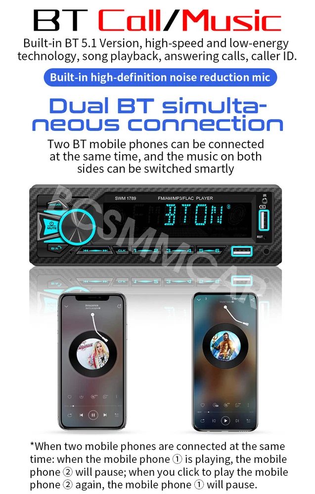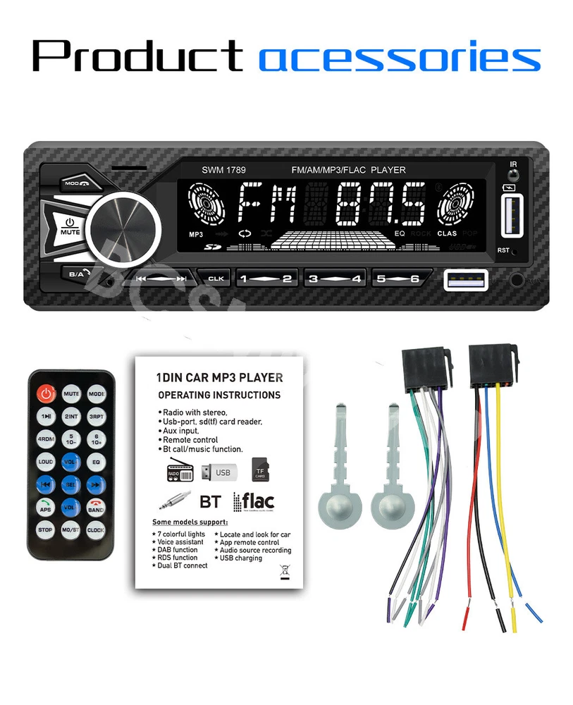 Home Payment Shipping About us Contact us Store Categories Store Categories Other Details Single 1 DIN Car Stereo Bluetooth FM/AM Radio MP3 Player In-Dash Audio Receiver Add our listing to Watchlist Or Add to Cart , you will get more discount Basic parameters Type:Car MP3 Player Radio IC:4732 Power:60Wx4 AMP IC:7388 Temperature:-10~60°C Voltage:12~14.1V BT:Version 5.1(Name:Car-BT) Frequency:FM 87.5~108.0MHz Installation Size:178x50mm Shell Size:188x58mm Host Depth:60mm Function parameters Mobile APP connection Locate and find:Support Front USB:1 USB charging ,another USB playback TF Card:Support(Not included ) Reset:Support Audio output:(2 channels left channel +2 channels right channel ) Audio input:Front AUX input( left channel +right channel ) Audio format:MP3/WMA/WAV/FLAC Product selling point: Smartphone APP control Support dual mobile phone bluetooth connection Support audio copy function Support the function of positioning and finding a car * Colorful button lights, colorful; *Intelligent AI voice control, one key to wake up mobile phone voice assistants, such as "Siri", "Xiao Ai", etc.; *Dual mobile phone bluetooth connection, can connect two mobile phone bluetooth at the same time, call hands-free, bluetooth music, voice broadcast; * Audio source copy function, you can record radio broadcast/AUX music/Bluetooth music; *Location and car search function, such as in a large parking lot, you can use navigation and positioning to quickly find the parking location; *Shutdown time display function, clear large screen without ghosting *High power 4*60W output; *AUX audio input, mobile phone, MP3/MP4/MP5/navigation and other audios are played in the car through the machine; *Support folder playback function, you can classify songs and create different folders in the memory card for easy playback; *Support high-fidelity audio formats such as MP3/WMA/WAV *Support large-capacity TF card, U disk and other memory playback; * Electronic tuning and radio function, automatic search and storage of stations, support for power-off memory; *Car-standard LED display technology, bright, but soft and not dazzling; *Power-off memory function, remember the radio or music playback status when the power is off; * Front and rear left/right channel isolation; * A variety of EQ sound effects scene selection: jazz, rock, pop, classical, etc.; *Adjust the high, low, left, and right front and rear sound, and easily enjoy the car audio and video effects; *Car ESC radio module; Shipping Policy Payment Method Returns Policy Shipping Policy Payment Method Returns Policy Home Payment Shipping About us Contact us Home Payment Shipping About us Contact us Store Categories Store Categories Details Single 1 DIN Car Stereo Bluetooth FM/AM Radio MP3 Player In-Dash Audio Receiver Add our listing to Watchlist Or Add to Cart , you will get more discount Basic parameters Type:Car MP3 Player Radio IC:4732 Power:60Wx4 AMP IC:7388 Temperature:-10~60°C Voltage:12~14.1V BT:Version 5.1(Name:Car-BT) Frequency:FM 87.5~108.0MHz Installation Size:178x50mm Shell Size:188x58mm Host Depth:60mm Function parameters Mobile APP connection Locate and find:Support Front USB:1 USB charging ,another USB playback TF Card:Support(Not included ) Reset:Support Audio output:(2 channels left channel +2 channels right channel ) Audio input:Front AUX input( left channel +right channel ) Audio format:MP3/WMA/WAV/FLAC Product selling point: Smartphone APP control Support dual mobile phone bluetooth connection Support audio copy function Support the function of positioning and finding a car * Colorful button lights, colorful; *Intelligent AI voice control, one key to wake up mobile phone voice assistants, such as "Siri", "Xiao Ai", etc.; *Dual mobile phone bluetooth connection, can connect two mobile phone bluetooth at the same time, call hands-free, bluetooth music, voice broadcast; * Audio source copy function, you can record radio broadcast/AUX music/Bluetooth music; *Location and car search function, such as in a large parking lot, you can use navigation and positioning to quickly find the parking location; *Shutdown time display function, clear large screen without ghosting *High power 4*60W output; *AUX audio input, mobile phone, MP3/MP4/MP5/navigation and other audios are played in the car through the machine; *Support folder playback function, you can classify songs and create different folders in the memory card for easy playback; *Support high-fidelity audio formats such as MP3/WMA/WAV *Support large-capacity TF card, U disk and other memory playback; * Electronic tuning and radio function, automatic search and storage of stations, support for power-off memory; *Car-standard LED display technology, bright, but soft and not dazzling; *Power-off memory function, remember the radio or music playback status when the power is off; * Front and rear left/right channel isolation; * A variety of EQ sound effects scene selection: jazz, rock, pop, classical, etc.; *Adjust the high, low, left, and right front and rear sound, and easily enjoy the car audio and video effects; *Car ESC radio module; Shipping Policy Payment Method Returns Policy Shipping Policy All items will be checked before packing. All items are new and of high quality. Item will be shipped within 1 business days upon receipt of payment, excluding weekends and public holidays. If to USA,we will ship your order by USPS,it will take about 2-6 working days to you,and you can track it on line. Payment Method We accept payment by PayPal ! Payment should be completed within 5 days after buyer places the order,or else an unpaid case will be opened in order to cancel the transaction. If you can not pay in time, please contact us. e-check from PayPal will only be processed once the payment clears. All of the items will be shipped to buyer's EBAY address,please confirm your address on Ebay before you buy.Your order will be usually shipped out the same or next business days once the payment is made and