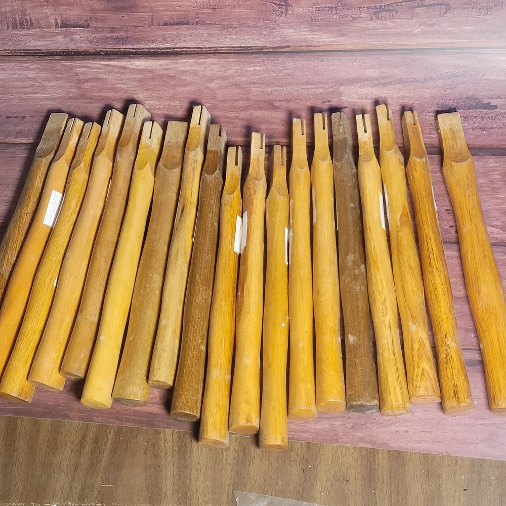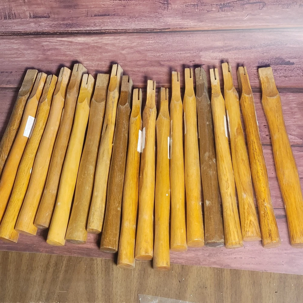 I have a bunch of these unused replacement axe/hammer handles for sale. Theyre rock solid and come finished with a lacquer coat for waterproofing/durability. They are solid hardwood (hickory?) and measure between 14-17" long. They are suitable for both axes or hammers. They have a sturdy and comfortable grip and will serve you well. These are first come first serve. If you want a specific handle (all handles are shown in the listing photos) let me know and Ill ship your choice if its still available, or the closest match if its not. If you dont have a preference I'll ship one at random. Get yours today while they last!