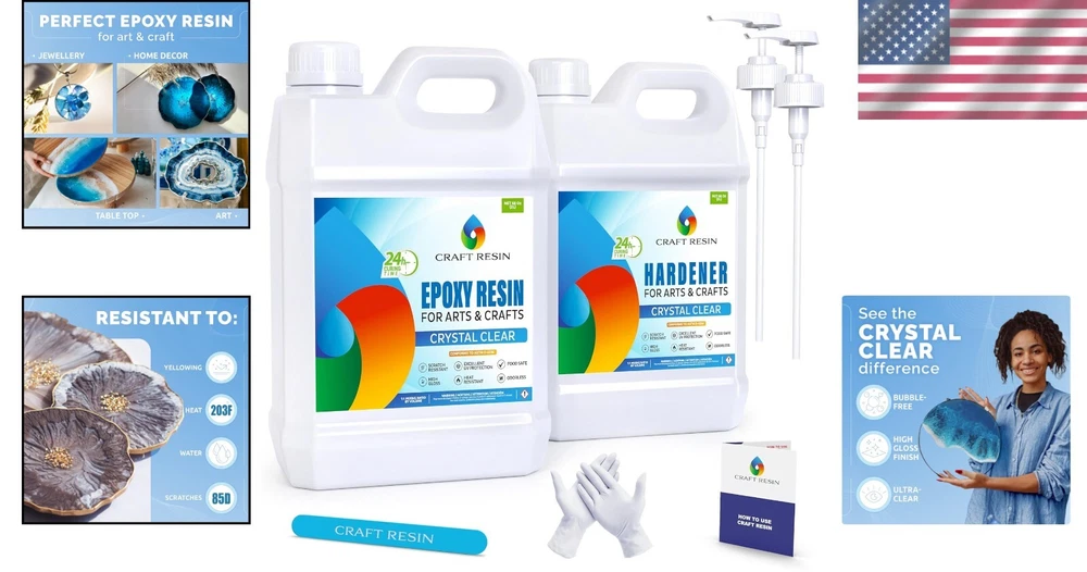 1 Gallon Crystal Clear Epoxy Resin Kit - Food Safe & Heat Resistant for DIY Art ‹ › ‹ › ‹ › ‹ › ‹ › ‹ › ‹ › ‹ › 1 Gallon Crystal Clear Epoxy Resin Kit - Food Safe & Heat Resistant for DIY Art Features: Artisan Approved Quality: Unlock your artistic potential with premium clear epoxy resin and hardener. Glass-like finish with no yellowing over time, perfect for DIY art, tabletop coating, mold casting, canvas, coasters, and jewelry making. Advanced Formula: Enjoy bubble-free results—our innovation releases air bubbles automatically when the resin is warm. Certified and Food Safe: Minimal odor, non-toxic, and free of VOCs and solvents, perfect for home and professional use. Fast Curing: Cures within 24 hours to a rock-hard finish, scratch resistant, and heat resistant up to 203℉ (95℃). Easy to Use: 1:1 ratio, includes resin (1/2 gallon), hardener (1/2 gallon), reusable mixing stick, and gloves. Benefits: Transform your creations with a stunning glass-clear effect. Enjoy peace of mind knowing the resin is food safe and environmentally friendly. Weather any project with heat resistance and a durable finish. Simplify your crafting process with our beginner-friendly kit. Why choose our Epoxy Resin Kit? Elevate your DIY art to sublime new heights with our 1 Gallon Crystal Clear Epoxy Resin Kit. Effortlessly create stunning pieces that capture the beauty of glass, while enjoying the benefits of easy bubbles elimination, food-safe properties, and rapid curing times. Whether you're a novice or an experienced artist, our premium resin empowers you to bring your creative visions to life, free from the hassle of imperfections. Don’t settle for less; invest in quality that lasts, and watch your artistry flourish! Order your kit today and unlock the full potential of your artistic journey! Shipping Free & Fast Shipping - We offer free shipping to most of the USA with a normal delivery time of 3-7 days. However, due to the current situation, additional delivery time (up to 3 weeks) may be required for some items. Alternative Carriers - We may use alternative carriers (e.g. USPS, FedEx, UPS, etc.) to ensure your package arrives safely and on time. Due to the use of multiple carriers, we are unable to provide a tracking number automatically. Handling Time - Orders are processed and shipped within 1-2 business days of receiving cleared payment. Shipping Restrictions - Shipping to Alaska, Hawaii, Puerto Rico, Guam, and other US territories may incur shipping charges or delivery restrictions. Please contact us before ordering, or your order can be refunded/cancelled. State Restrictions - There may be restrictions based on your state of purchase. For example, certain items may not be shipped to California due to state regulations. Contact for Tracking Updates - If you require tracking updates or have any concerns about the delivery of your order, please feel free to contact us, and we will be happy to assist you. Return Please see our eBay Return Policy. Thank you. Payment We accept all major credit cards, PayPal, and Apple Pay for your convenience. Your payment information is secure and encrypted to ensure a safe and seamless transaction. Please complete your payment within 3 days of purchase to avoid any delays in shipping. Feedback Your feedback is extremely important to us. We strive to provide the best products and customer service possible. If you are satisfied with your purchase, please take a moment to leave us a positive review. If you have any concerns or issues with your order, please contact us before leaving negative feedback. We are committed to resolving any problems and ensuring your satisfaction. Contact Us If you have any questions or concerns, please feel free to reach out to our customer support team. You can contact us through the eBay messaging system. We are available Monday to Friday, 9:00 am to 5:00 pm EST, and we will do our best to respond to your inquiry within 24 hours. Thank you for supporting our small family business! UPC: Not Set Model: Not Set MPN: Not Set Unit Quantity: 1 Color: Clear Brand: Unbranded Country/Region of Manufacture: Not Set Unit Type: gal Handmade: Not Set