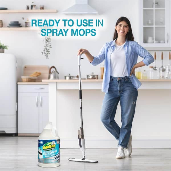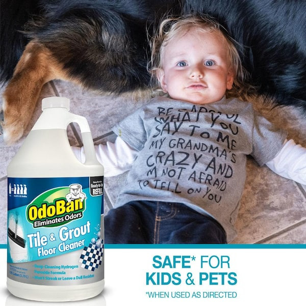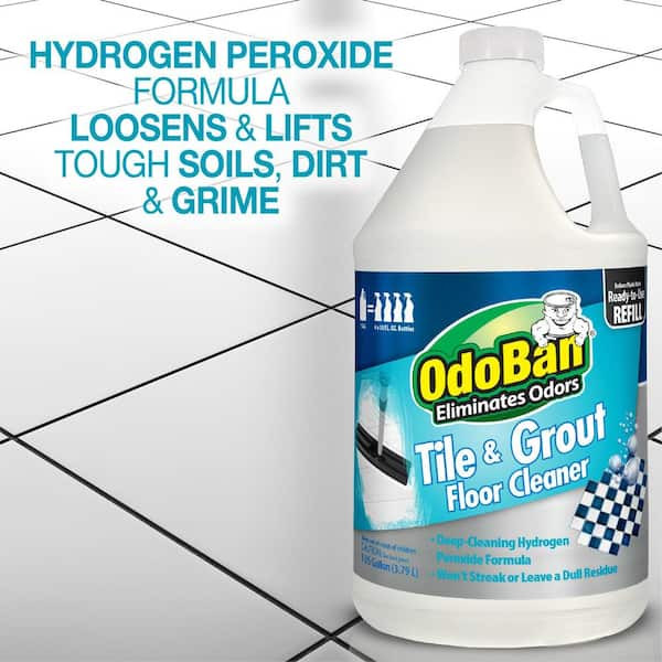 OdoBan Tile and Grout Floor Cleaner is a ready-to-use flooring deep cleaner with the power of hydrogen peroxide. Featuring powerful oxy cleaning action that penetrates grout and crevices to lift and remove soils and grime on hard flooring. Safe for use on ceramic, porcelain, glass and sealed natural stone such as limestone, travertine, marble, granite and quarry tile. Also great on laminate, luxury vinyl, engineered wood and finished hardwood floors. Fast-drying, streak-free formula leaves no dulling residue. Safe for use around pets and kids, when used as directed. No added dyes, phosphorus, parabens, phthalates, ammonia or gluten. Not for use on unsealed natural stone and unfinished or oiled wood.