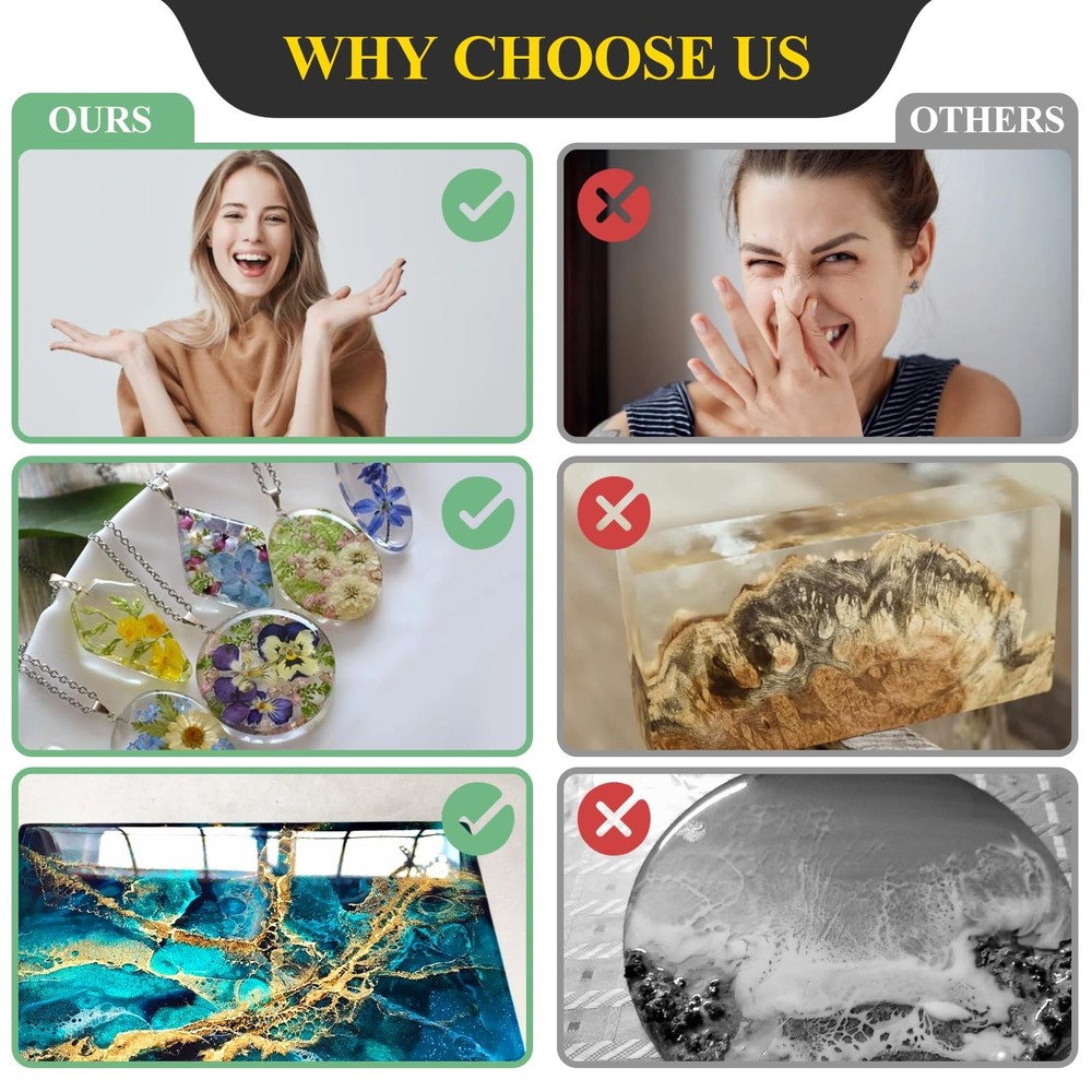 Extra-Strong Gloss & Crystal Clear Epoxy Resin – We as an brand,has our own R&D and manufacturing team.In order to achieve high gloss and yellowing resistance finish, We all use higher grade safe and reliable raw materials.Compared to other cloudy resin kit on the market,ours hard as a rock,have a glass-like finish,long-lasting, ultra-clear appearance without yellowing. EASY TO USE & FASTER CURE – Our kit include 0.5gallon clear resin and 0.5gallon clear hardener.As long as mixing 1:1 ratio by volume of the resin and hardener,it cures quickly within 8-24 hours.Requires no experience, even if you are new to resin.To make a perfect finish in cold weather:Prewarm resin and hardener before using. EXTRA-STRONG GLOSS & 3×UV RESISTANT EPOXY RESIN – We as an brand,has our own R&D and manufacturing team.In order to achieve high gloss and 3×yellowing resistance finish, we all use higher grade safe and reliable raw materials.Compared to other resin kit on the market,ours hard as a rock,have a glass-like finish,long-lasting, ultra-clear appearance without yellowing. NO BUBBLES AT All - Our brand cares a lot about user experience, so we have changed the formula to add defoamer for this purpose,which can prevent air bubbles as well as stronger defoaming ability, recommended each layer no more than 1/4 inch,can be completely eliminated within one hour.Also,our epoxy kit is non-toxic,odorless and non-flammable,more safe than others. SUITABLE FOR BEGINNERS & PROS - 40 minutes working time allows you to create what you want,after this time it becomes scratch resistant, advanced additive resistant to heat up to 203℉ (95℃). Our casting and coasting resin are suitable for All kinds of DIY craft projects such as making jewelry, coasters, tumbles, table tops, countertop, painting, etc. And it fits perfectly with silicone molds, not causing molds tearing. WHY CHOOSE US - We are a manufacturer with many years of experience in developing and selling resins,all of our resin have 1 year after sale.To avoid the biggest problem of resin, such as curing problem, please read the manual carefully and then test in a small amount before working.Any questions(leakage,lost,usage problems),please do not hesitate to us at any time.