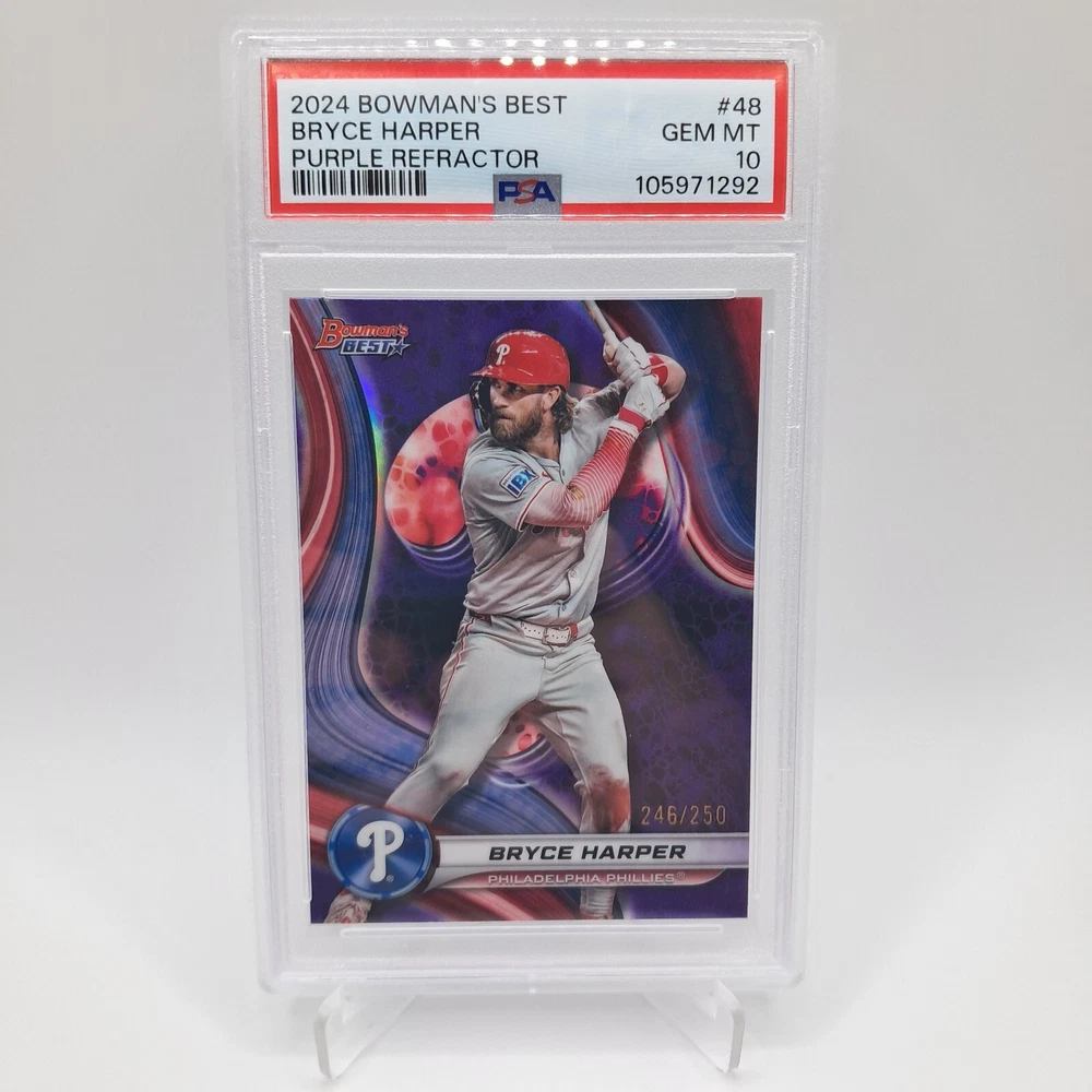 What you will receive : 1 graded card. Sports include Baseball, Football, and Basketball. This is a chaser pack so not every pack is guaranteed to be more than what you payed. Some packs will be below the listing price but some will be way more than the listing price. Message me with any questions! Slabs : Slab companies include but are not limited to: PSA, SGC, BGS (Beckett), and the Ohtani HGA Chasers : 2022 Bowman Chrome Sapphire Ohtani Aqua /199 PSA 9, 2021 Prestige Justin Fields Auto /25 PSA 9, 1996 Ultra Kobe Bryant PSA 8, 2018 Bowman's Best Ohtani HGA 9.5 RC, 2005 Topps Aaron Rodgers PSA 9, 2020 Panini Donruss Justin Herbert PSA 10, 2024 Bowman's Best Bryce Harper /299 PSA 10, 2011 Bowman Platinum Bryce Harper PSA 9, 1989 Topps Traded Ken Griffey Jr. PSA 9, 2024 Bowman's Best Tyler Fitzgerald Auto /150 PSA 10 Feedback : My 1 hit mystery packs have been around for a while now with 100% positive feedback! This is a new pack but hopefully it does as well as that pack. I strive for 100% positive feedback so any feedback is much much appreciated Shipping : Slabs will be shipped in a bubble mailer within 2 business days