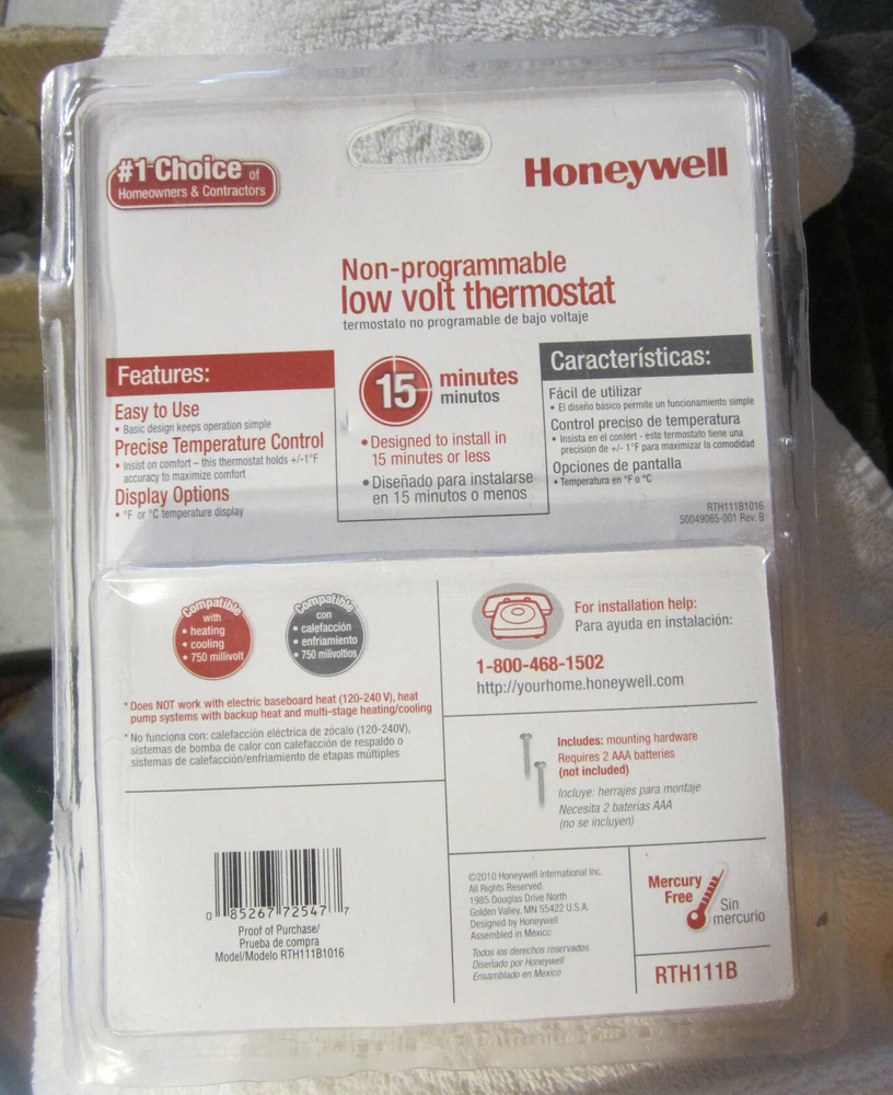 1 Honeywell RTH111B H/C Digital Thermostat Nonprogrammable - White NEW