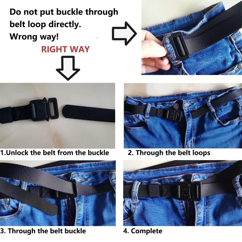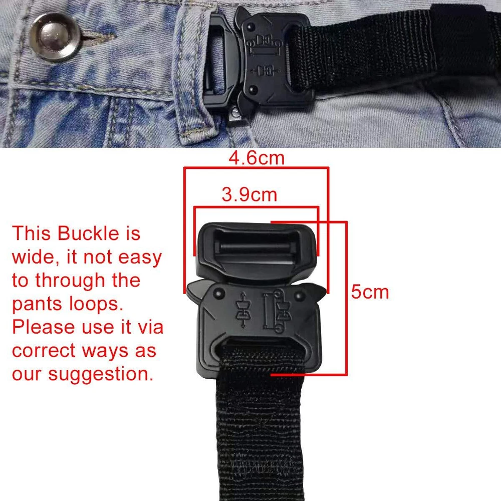 1 inch Wide Tactical Belt Features: 1. 1” wide nylon webbing belt with quick release metal buckle is lightweight and breathable. 2. Heavy duty zinc alloy buckle is durable and quick release. 3. Ideal for sports, outdoor, hiking, fishing, golf, training and others outdoor occasions. 1 inch Wide Small Buckle Tactical Belt Features: 1. Skinny nylon belt with small zinc alloy buckle is easy to through most belt loops. 2. Webbing belt is made of high quality nylon, it is breathable and soft. 3. Small Quick release buckle is made of zinc alloy, it is lightweight and sturdy. 4. It is more comfortable than regular belt, small and lightweight belt is fit for wear in all kinds of ocassions, such as hiking, running, riding, finshing, golf, daily wear, and so on. Material: Belt mateial: High quality nylon stap Buckle Material: Zinc Alloy. Size Size: Length: 49""/125cm (buckle is included) Width: 1""/2.5cm, suitable for waist under 44"" Style 1: Buckle Size: 1.97""*1.57""*0.35""/5cm*4cm*0.9cm Style 2: Buckle Size: Width:3.5cm/1.38inch, Length:4cm/1.57inch Package List: 1x Nylon Belt Men's 1 inch wide belt made of high quality nylon webbing fabric which is strong, durable and powerful enough to support various holsters, clips and molle pouches. 1" nylon belt with sturdy zinc alloy buckle which is sturdy and rugged, easy to release and close via push two tabs on the side of buckle. The narrow webbing belt easy to carry and be available for more occasions in different outdoor activities. With two parallel embossed lines in the belt, it will look more special and strong. In case of emergency, it would be a survival belts. One Size Fit for Waist 24"-44", Belt Length: 49"/125cm (buckle is included), Width: 1"/2.5cm. You can trim the belt length to a size you want, and seal it by a lighter later. Ideal for outdoor activities, hiking, camping, hunting, riding, fishing, golf, work and daily use. It will be nice gift for your brother, father, husband, boyfriends or other important people.