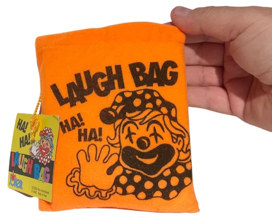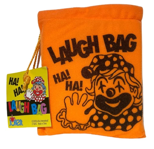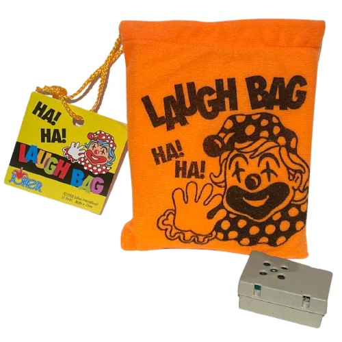 NEW 1 Laugh Bag! BEST PRICE ON EBAY! Push the button on the small enclosed box and hear the crazy howling laughter sounds. Bright orange soft fabric bag with foam inside approx. 5.5" x 4.5" Includes 3 cell batteries. WOW FREE SHIPPING! Great prop for clowns, MC's, jugglers, magicians, comedians and jokesters! Please stop by The Visual Comedy Shop for other fun, top notch quality items featuring the Geist Visual Comedian DVD!