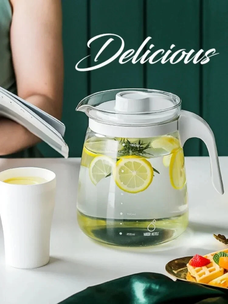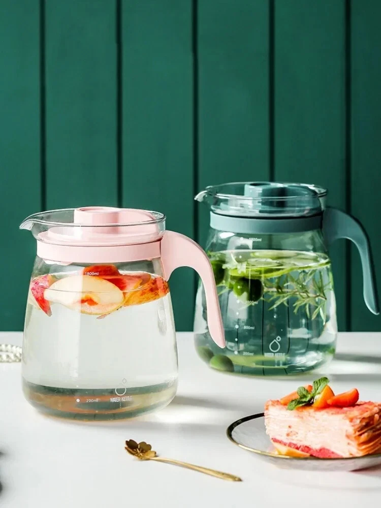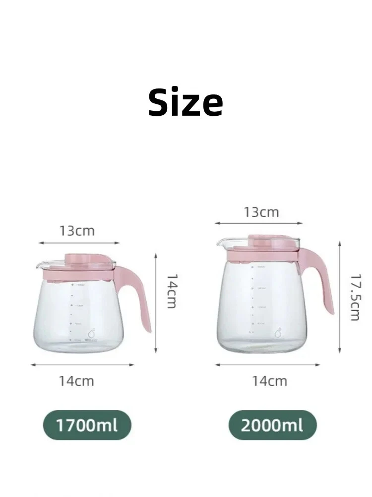 Large Capacity Glass Kettle High Temperature Resistance Water Bottle Household Transparent Teapot Coffee Jug Drinking Utensil Description: Material: Glass Capacity :1700ml/ 2000ml / 2300ml Color: White/Pink/Green Easy to clean, suitable for home use, offices, cafes, hotels, etc Note: 1. Due to the different monitor and light effect, the picture may not reflect the actual color of the item. Thank you! 2. Please allow 0.5-2cm error due to manual measurement. 3. If you encounter product quality problems, please contact us, we will handle it for you as soon as possible.
