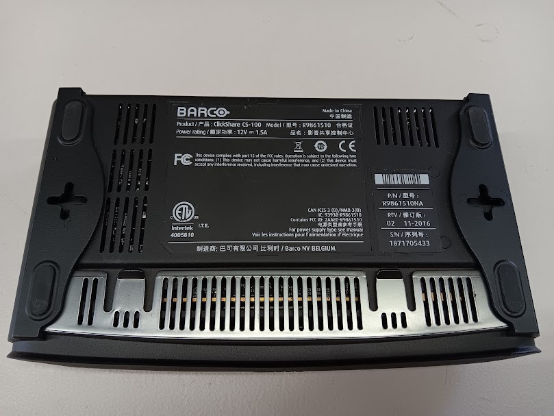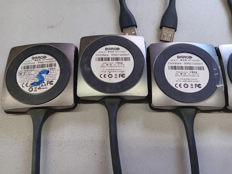 1 Lot - Barco - ClickShare Equipment - Untested / For Parts Or Repair This Lot Contains The Following Items 1 x ClickShare CS-100 R9861510 9 x ClickShare CSE-200 R9861520 1 x Storage Tray 18 x ClickShare R9861006D01 34 x ClickShare R9861500D01 This Lot Is Being Sold As-Is And Untested / For Parts Or Repair. Units Might Have Dust Or Dirt, Units Might Be Broken Or Missing Parts. Units May Have Scratches Or Dings. Please Check Pictures For Condition. Feel free to reach out with any questions.