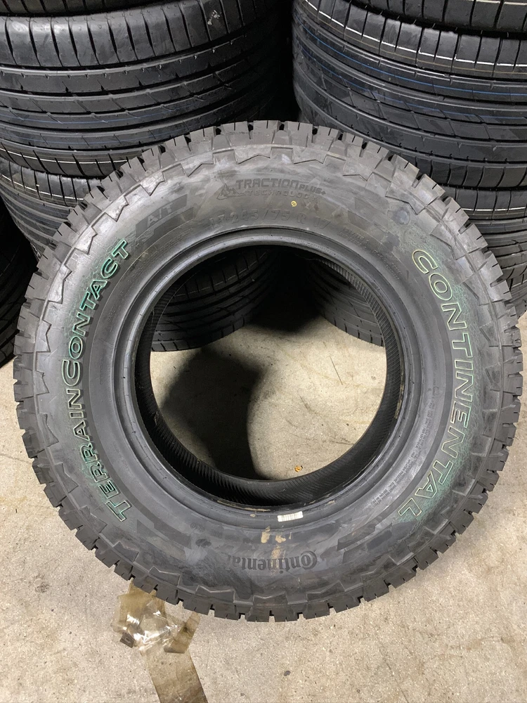 One (1) New LT245/75R 17 LRE 10 Ply Continental Terrain Contact AT Tire Free Shipping This tire is new, not a blem, and has never been mounted. Please check fitment before you bid, and e-mail with any questions. This tire is 2016 production. If this concerns you at all, please do not purchase this tire. We do not accept returns based on the age of tires. By making a purchase, the buyer agrees to the production year listed in the item description. 1x = 1 tire Free shipping for 1 tire and in the 48 Continental US States Only!