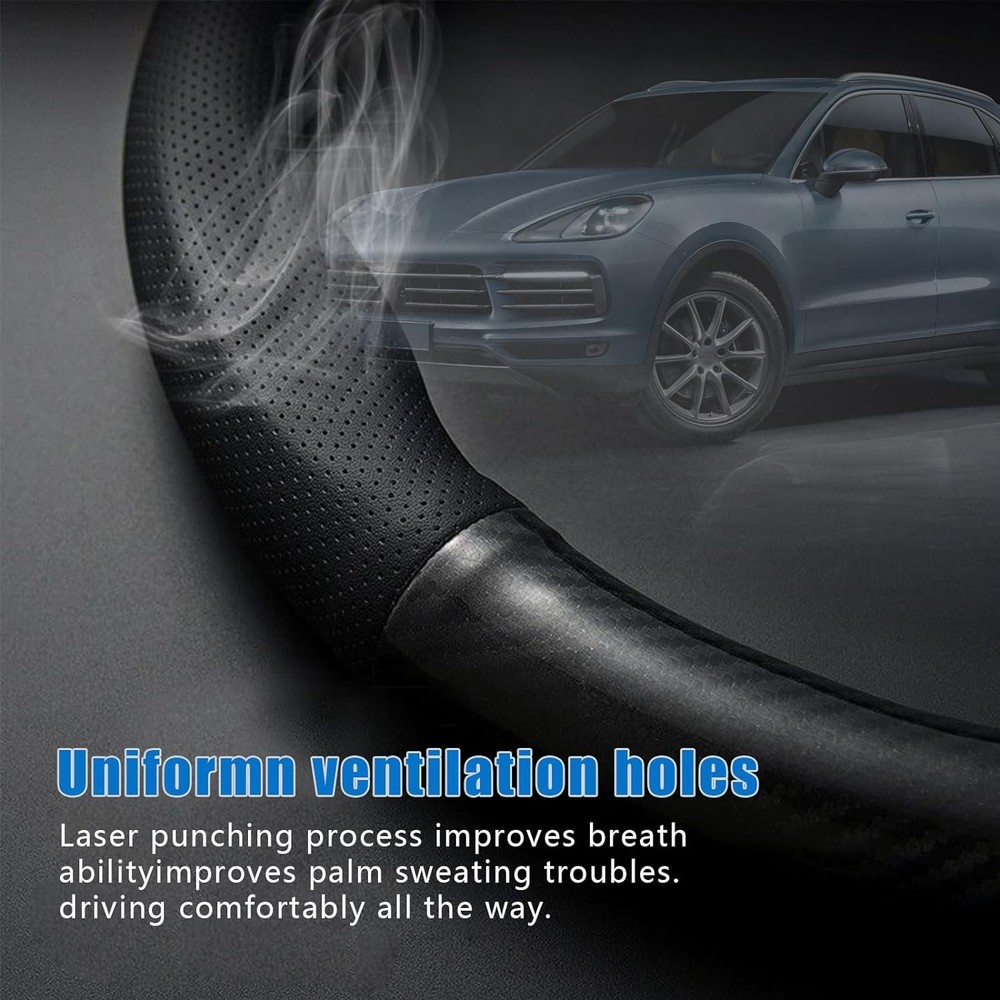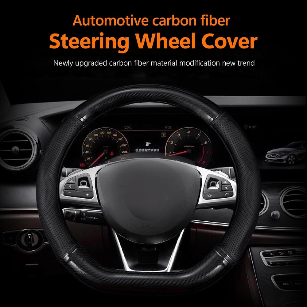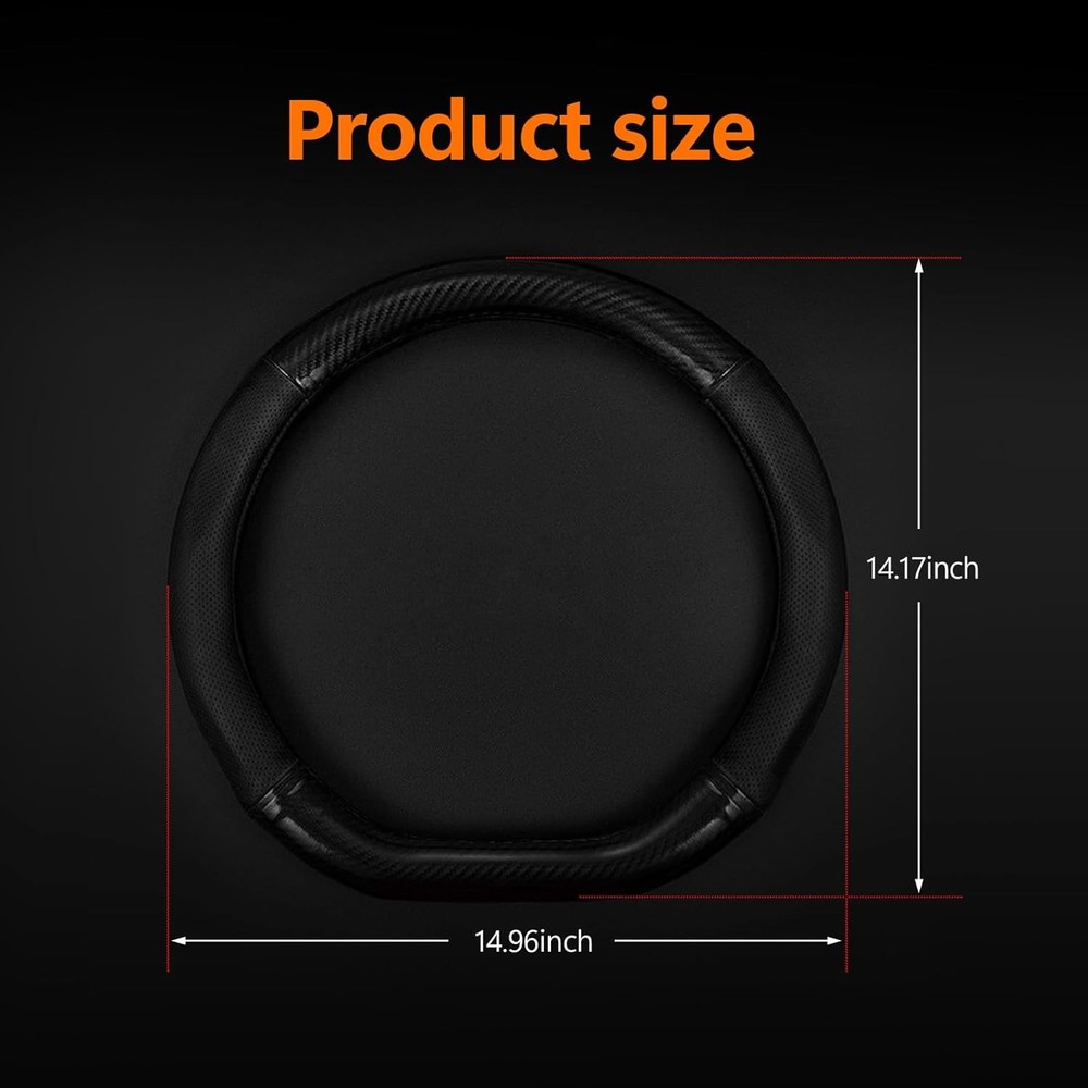 About this item π Carbon Fiber Leather Material: The steering wheel cover is made of carbon fiber leather material. Carbon fiber is lightweight, strong, and wear-resistant. This material not only enhances the hardness and durability of the steering wheel cover but also gives your vehicle's interior a stylish and modern touch. π Breathable Pinhole Design: The surface features a breathable effect through a pinhole design that promotes air circulation, effectively reducing moisture and discomfort during long drives, resulting in a more comfortable driving experience. π Anti-slip Design: The protective cover utilizes environmentally friendly rubber lining, which provides anti-slip properties, increasing the grip and stability of the steering wheel cover, thereby enhancing driving safety. The concave and convex section design takes into account the natural shape of the human hand, allowing for a more secure fit and reducing palm pressure and discomfort. π Easy to Clean: Carbon fiber leather is resistant to stains and durable, making the steering wheel cover easy to clean and maintain. Simply wipe it down to keep it looking tidy. π Package Dimensions: 14.84 x 14.25 x 2.76 inches.