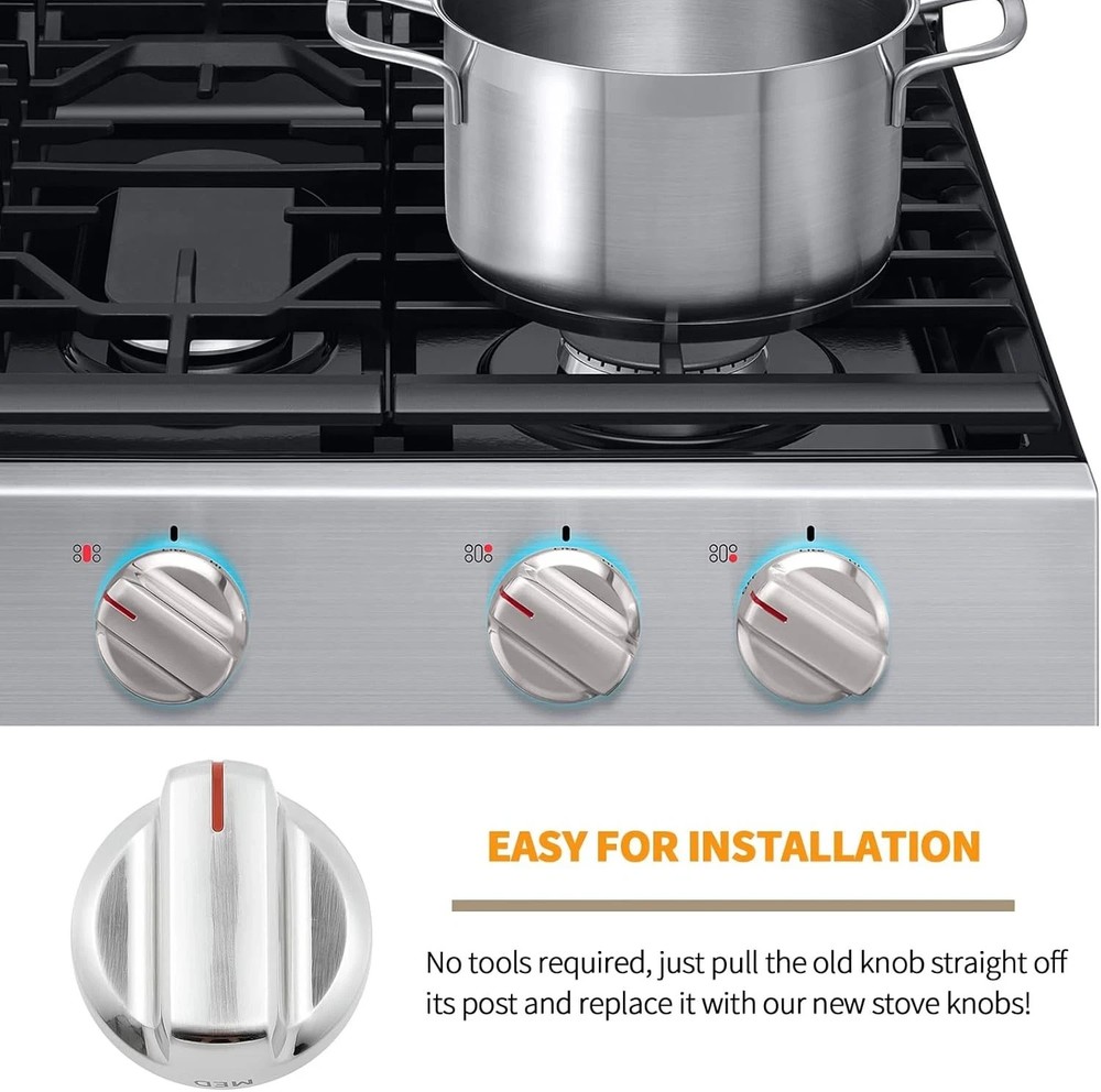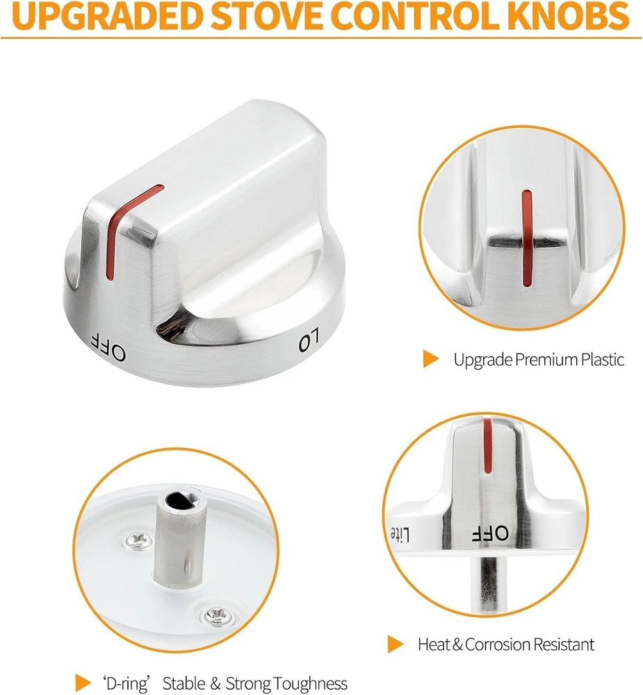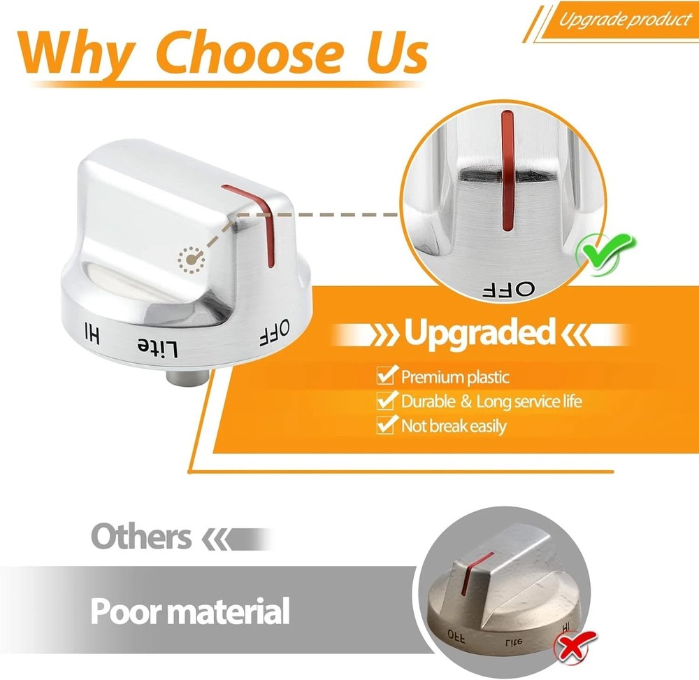 5 P Stainless Steel Look Control Knob Kits For GE Gas Range Stove WB03X24818*&*