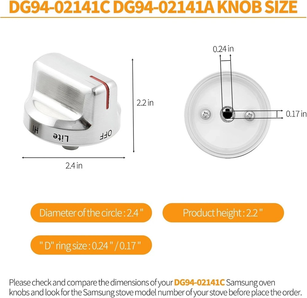 1 Pc DG94-02141C Stove Knob Replacement Parts for Samsung Assembly Knob NX58M6630SS/AA Gas Range Knob Oven Knob DG94-02141A Surface Burner Knob Cooktop Knob NX58M6630SS Dial Control Knob About this item Package and Dimension: 2 2/5’’ x 2 1/5’’ per samsung samsung stove knobs, Total 1 pcs in 1 pack for samsung stove knob replacement for samsung stove parts (Please make sure the samsung dg94-02141c assembly knob nx58m6630ss/aap size perfectly fit your gas stove) Material of Samsung Gas Stove Knobs: The samsung range knobs is made of upgraded silver plastic, giving the samsung oven knobs replacements more durable, heat-resistant, wear-resistant, perfect match, easy install, aesthetic appeal and long-lasting, withstanding the heat generated during cooking while complementing the overall design of your samsung replacement parts Long-Lasting: The inside sleeve on the back of the samsung stove knob for samsung gas range parts, the part that slides over the samsung burner control rod on the range, is made of durable plastic so that the sleeve prevents radial movement during on/off cycles, which can withstand heat and daily wear and tear Easy To Install: 1. Remove the Old Knobs: Make sure the samsung range knobs replacements for are firmly in the "off" position, grasp the samsung knobs firmly and pull it away from the stove. 2. Install the Replacement Range Knobs: Align the samsung knob for samsung stove replacement parts with the stem or shaft on the Samsung stove and make sure the samsung cooktop knobs is in the “off” position. 3. Test Functionality: Turn the knob slightly to check that the samsung oven knobs for samsung gas stove parts are working properly 【Replacement for Samsung Range Parts Number】 Samsung DG94-02141C, DG94-02141D, DG94-02141A and more, samsung dg94-02141c assembly knob nx58m6630ss/aap, samsung dg94-02141a, samsung assembly knob #sam-dg94-02141a, samsung dg94-02141c, dg94-02141a samsung knob, samsung dg94-02141a burner knob for range, samsung range knobs dg94-02141a, samsung stove knobs dg94-02141a 【Replacement for Samsung Oven Parts】 Samsung NX58M6630SS/AA, NX58M6630SG/AA, NX58M6650WS/AA, NX58M6650WS/AC, NX58R6631SS/AA, NX58R6631ST/AA and more, nx58m6630ss/aa knobs, nx58m6630ss/aa knobs samsung, nx58m6650ws knobs, samsung nx58m6650ws knobs, nx58m6630ss knobs, samsung nx58m6630ss/aa stove knob, samsung nx58m6630ss knob, nx58r6631ss/aa replacement knobs, nx58r6631ss/aa replacement knobs
