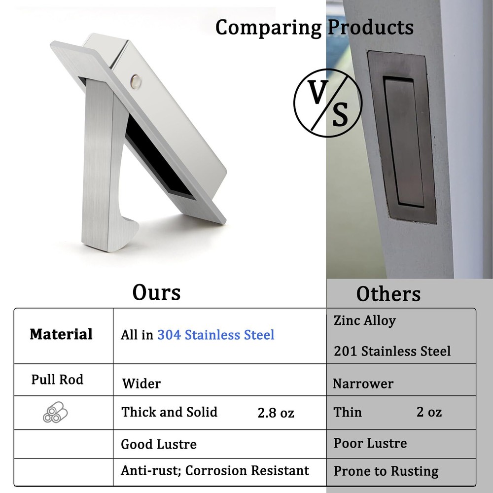 1 Pack Pocket Door Edge Pull Hidden Door Handle Flush Mount Pocket Door Features: 304 Stainless Steel Material: Solid piece with a satin finish, these handles are rust and weather-resistant, making them suitable for outdoor use Beautiful and Low Profile: With a smooth, clean, and elegant design, these pulls add a sophisticated touch Flush: The self-retracting mechanism ensures the lever closes flush with the door panel Hidden Screws: At 11/16 inch width, these pulls allow installation on both narrow and standard doors and cabinets, providing a clean, hidden pull look Solid Piece: Made from solid material, these pulls feature a unique design for maximum strength and durability Description: Pocket Door Pull Handle, Edge Pull, Professional Stainless steel 304, Flush Mount Door Pull for Pocket Sliding Door 🌻 If you need more quantity than shown available - just send me a message and I'll increase the purchased limit for you 🌻 SHIPPING We are always working hard to ensure your package arrives as soon as possible. Please understand that some factors like weather, high postal traffic, and the performance of shipping companies are outside of our control. We offer free shipping to the lower 48 states. We do not accept P.O. Boxes. Please provide a physical address. Thank you 🌻 TRANSLATE with x English Arabic Hebrew Polish Bulgarian Hindi Portuguese Catalan Hmong Daw Romanian Chinese Simplified Hungarian Russian Chinese Traditional Indonesian Slovak Czech Italian Slovenian Danish Japanese Spanish Dutch Klingon Swedish English Korean Thai Estonian Latvian Turkish Finnish Lithuanian Ukrainian French Malay Urdu German Maltese Vietnamese Greek Norwegian Welsh Haitian Creole Persian