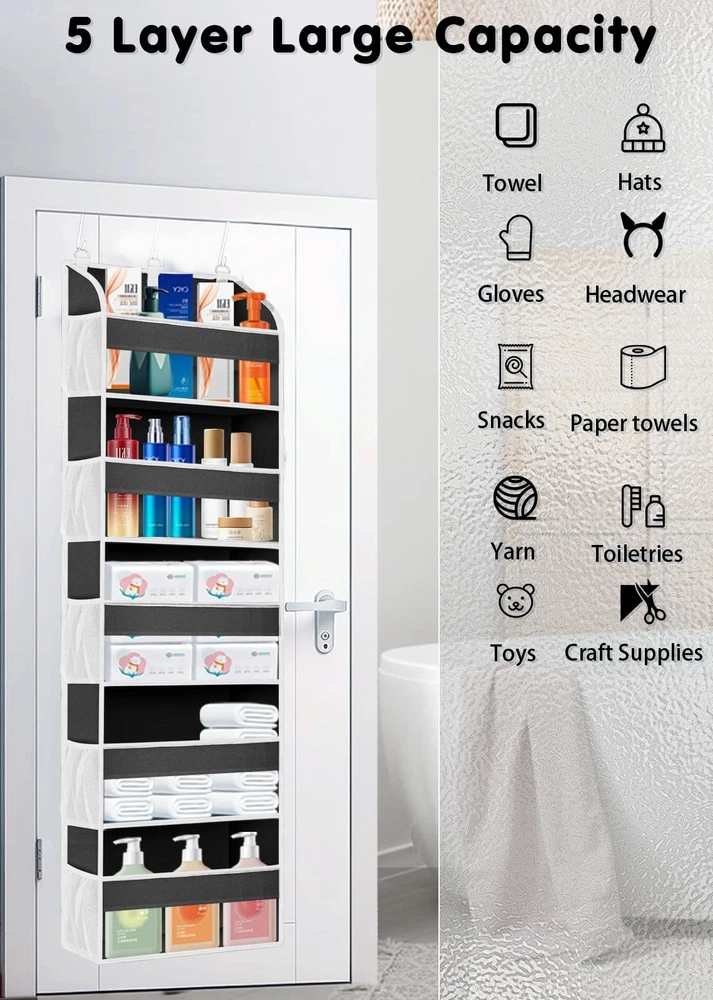 animal storage,baby essentials,Newborn Essentials Must Haves,baby must haves,baby essentials,hanging closet organizer,craft organizers and storage,purse organizer,towel storage,yarn storage,back of door organizer,small space organizer,over the door organizer,organizers for bedroom,over door organizer,over the door organizer,bathroom storage organizer,over the door storage organizer,diaper organizer,bedroom organization,door organizer,nursery organization,college dorm essentials Large Capacity and Space Saver - The over the door storage organizer features 5 large pockets (each 15" L x 6.5" W x 6.5" H) and 10 mesh pockets on the sides. It's perfect for maximizing storage space in bedrooms, bathrooms, and dorm rooms. With a 44 lbs weight capacity, this door organizer is a versatile space-saving solution for your home. Newborn Baby Essentials Organizer - The door hanging organizer is crafted from breathable, non-woven fabric that is odorless, non-, and safe for your baby. This multi-functional storage solution can be used for animal storage, organizing baby clothes, diapers, , and baby , making nursery organization a breeze. It's the perfect addition to keep your baby's essentials organized! Simple Installation and Tool-- This upgraded over door organizer features 3 sturdy metal hooks and reinforced , ensuring your items stay securely in place without tilting. Designed to fit most doors without hindering their closing (with a door gap within 1.65 inches), it's an ideal solution for closet organizers and storage, making room organization a breeze. Versatile Organization for Any Space - Discover a multitude of uses for this door organizer in various rooms of your home. Perfect for bedroom storage, bathroom essentials, dorm room clutter, and nursery organizers and storage, this back of door organizer offers a clear view of contents through its transparent front pockets, making it easy to find what you need at a glance. Master Organization and Storage - We're confident you'll love our products, but if you have any questions or concerns, don't hesitate to reach out. We're committed to providing a prompt and satisfactory response to any inquiries or feedback within 24 hours, even after your purchase. Your satisfaction is our top priority.