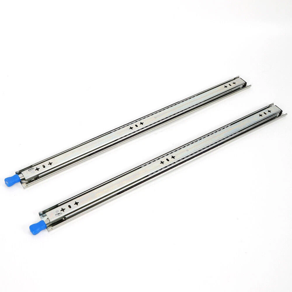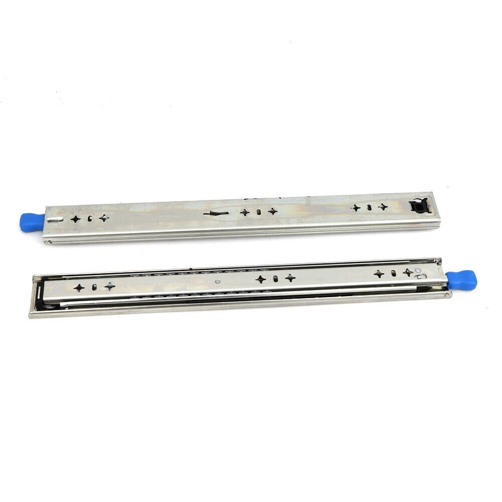 Specification: Colour: Silver Type: Heavy slides Material: high quality cold rolled sheet Bearing capacity: 120KG (266LB) Surface treatment: blue zinc, electrophoretic black Installation Form: Drawer Side Installation Specifications:32" (800mm) Origin Length:31.4" Extended Length: 62.9" 1 Pair 32-Inch Drawer Slide Ball Bearing 266lbs Full Extension Heavy Duty w/Lock Description This is a new heavy-duty lock slide rail with good stability, small swing, smooth sliding, easy to use, suitable for all kinds of cupboard, tool cabinets and other large equipment, is the furniture industry, caravan and industrial field of high-quality choice. Specification: Colour: Silver Type: Heavy slides Material: high quality cold rolled sheet Bearing capacity: 120KG (266LB) Surface treatment: blue zinc, electrophoretic black Installation Form: Drawer Side Installation Specifications: 32" (800mm) Origin Length: 31.4" Extended Length: 62.9" Features: 1. The surface is coated with high density zinc metal, which can effectively prevent the corrosion of the product surface and prolong the service life of the product. 2. Anti-skid rubber pad, increase friction, put back track colloidal fall and open automatically after closing. 3. Anti-skid device with lock, suitable for heavy industrial equipment. 4. Solid steel ball, check can bear 1 20KG (266LB) (the longer the pull out, the smaller the load). 5. Three-section track design, effective load-bearing, precise contraction. Package Included: 1 Pair Heavy Slide (excluding mounting brackets and screws) Note: - Due to different producing batches, product details might be a little different. If you minding the difference, please buy it carefully. -Please allow 1-3MM differs due to manual measurement. -Due to the different display and different light, the picture may not reflect the actual color of the item. Thanks for your understanding. note:The uppermost layer of the slide rail is divided into left and right. After it is completely pulled out, please return to the original way. If it is replaced and installed forcibly, it will not work Payment Delivery details Terms of sales About us Contact us Payment We accept ebay payment 。 Fees such as import duties, taxes are not included in the item price or shipping costs. These charges are the buyer's responsibility. Delivery details Shipping: 2-9 working days to: USA Terms of sales We maintain high standards of excellence and strive for hundred percent customer satisfaction. Feedback is very important to us. We hope that you contact us immediately before you give neutral or negative feedback, so that we can address your concerns. It is impossible to address issues if we do not know about them! About us Your satis faction is our ultimate goal. We work hard to earn your trust and future business. Our certified technicians have tested each item before shipping. The unit comes with 1 year limited warranty on all manufacturing defects. a) If you receive a defective item, you may return it or ask for a discount. Please contact us within 14 days after you receive the package. b) What you returned must be intact and in its original packaging as re? u. Customer is responsible for shipping costs of the returned item. c) We will cover the cost of shipping back t with the shipping rate indicated in the registration page. We will send you a new unit or refund the full payment you paid. Thank you. Contact us Business Hour Business Hour: Monday To Friday: 8:30 AM to 5:00 PM (Beijing China time) Due to time zones, our reply to your questions may not be immediately. But within above working time, we will reply your email within 24 hours. If it's non-workdays, please kindly be patient and wait till Monday. Please contact us with ebay message. Please feel free to contact us if you have any questions. Monday To Friday: 8:30 AM to 5:00 PM (Beijing China time) Due to time zones, our reply to your questions may not be immediately. But within above working time, we will reply your email within 24 hours. If it's non-workdays, please kindly be patient and wait till Monday. Please contact us with ebay message. Please feel free to contact us if you have any questions.
