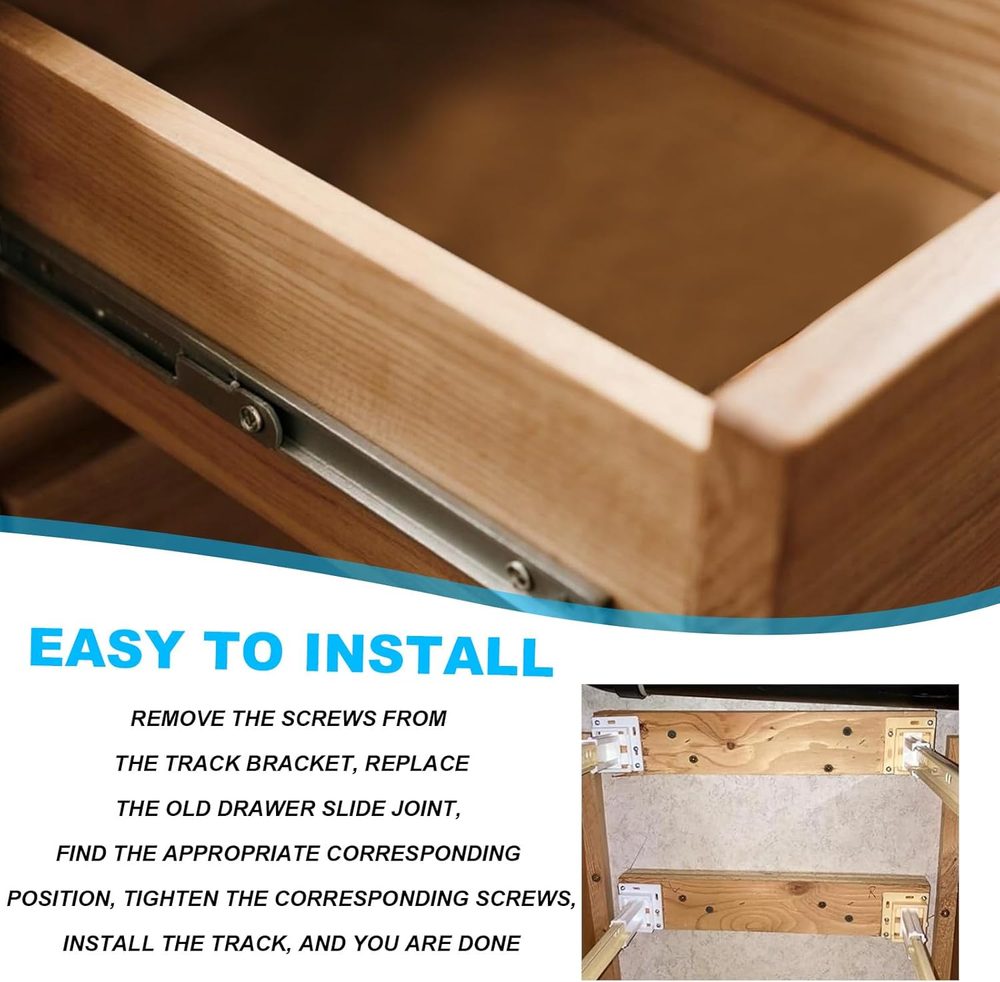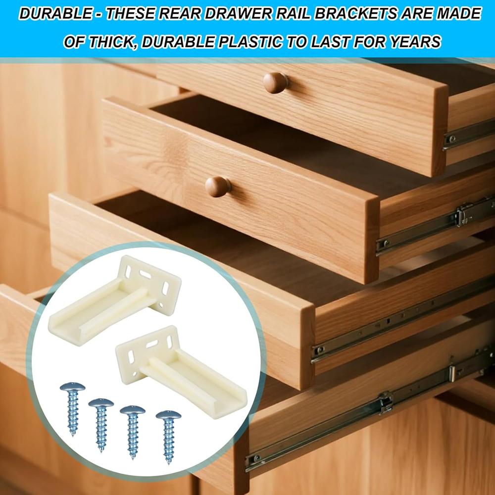 Package List: You will get enough number of drawer track socket brackets, and come with enough number of screws, practical functions and sufficient quantity can bring convenience to your daily use of furniture. Awesome Material: This drawer track socket bracket is mainly made of reliable plastic material, which is strong and durable, plus the metal screws can provide you with a sturdy and durable support, making your drawer last longer. Widely Used: Our drawer track socket bracket is suitable for most of the furniture in your room, such as bedroom dressing table, office furniture or bedroom cabinet, which is very versatile. Size Details: The overall size of this drawer track socket bracket is 9.78x5.08x3.15cm/3.85 x2x1.24in, which is a moderate size and can fit your cabinet perfectly. Easy Installation: You can easily install our drawer track socket bracket by removing the screws on the track bracket, replacing the old drawer slide joint, then finding the appropriate corresponding position and tightening the corresponding screws. Specification: Color: white, silver Material: plastic, metal Product Size: 9.78x5.08x3.15cm/3.85 x2x1.24in Package details: Sufficient number of drawer track socket brackets Sufficient number of screws Note: Due to manual measurement, the size and weight may have a certain error. Due to the difference between monitors, there may be a slight color difference.