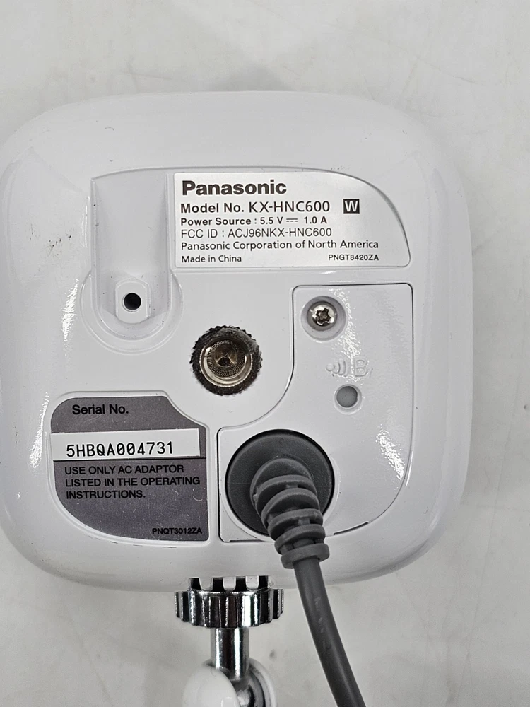 Model: HNC600 Number of Channels: 1 MPN: KX-HNC600W Manufacturer Warranty: See Item Description Location: Outdoor Only Connectivity: Wi-Fi, Wireless UPC: 885170197268 Power Source: Hardwired, Wall Plug-In Compatible Brand: Panasonic Country/Region of Manufacture: China Type: Surveillance Camera Surveillance Technology: IP/Network Brand: Panasonic Smart Home Protocol: Wi-Fi Features: Add-On Camera, Bracket, Night Vision, Outdoor/Weatherproof, Waterproof, Wi-Fi gtin13: 885170197268 Year Manufactured: 2015 Power: 600 W Color: White/Black