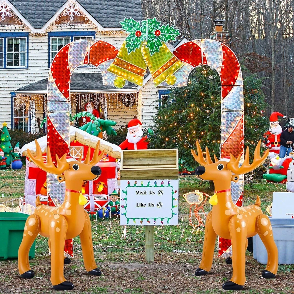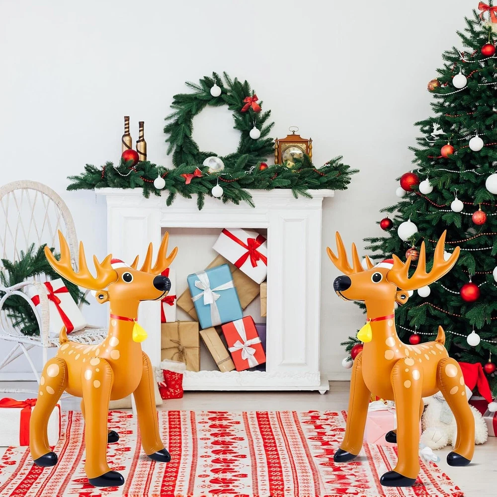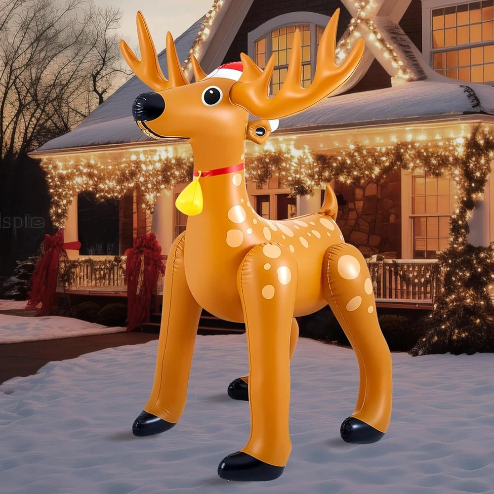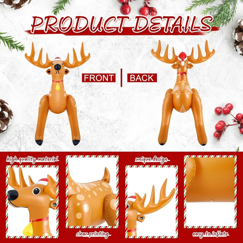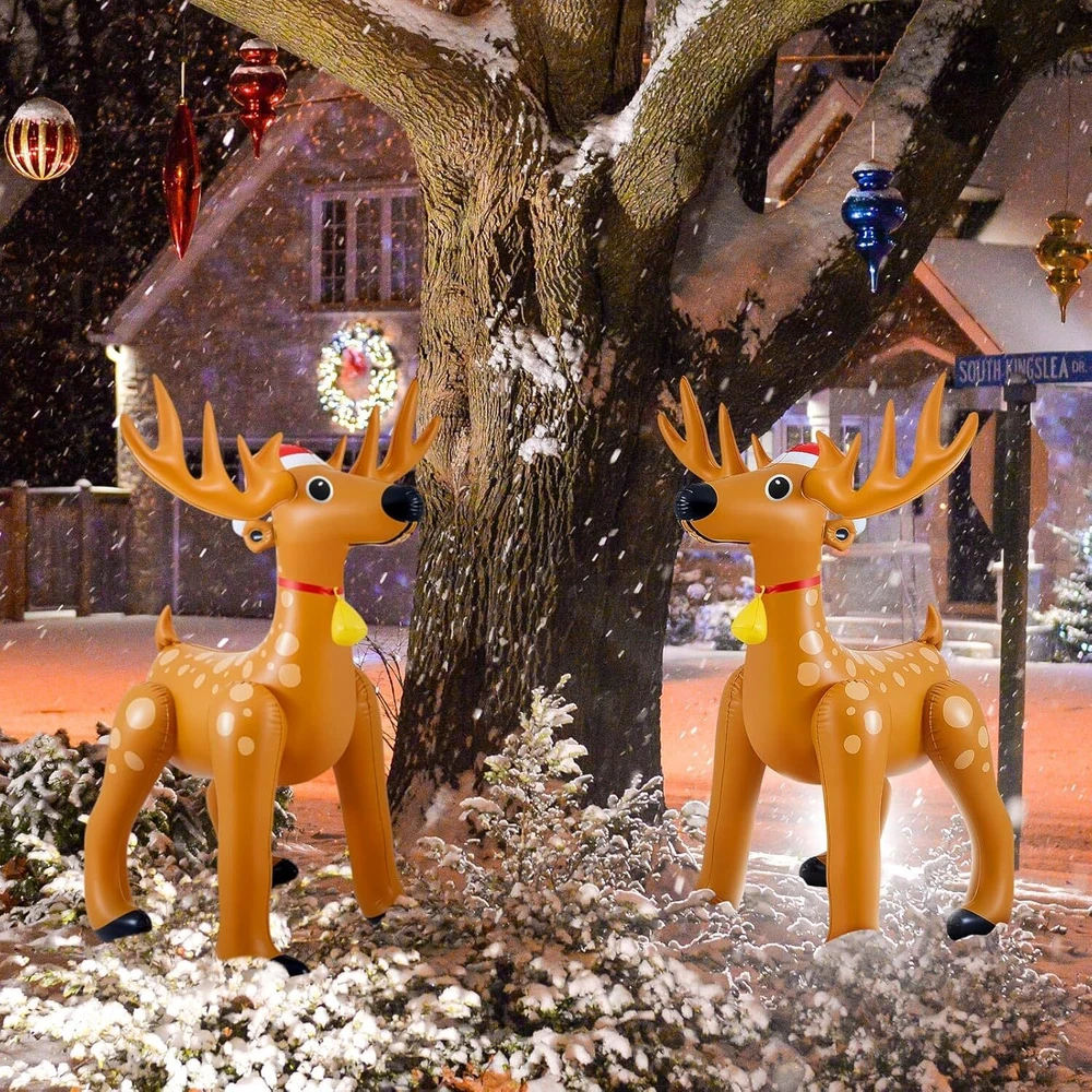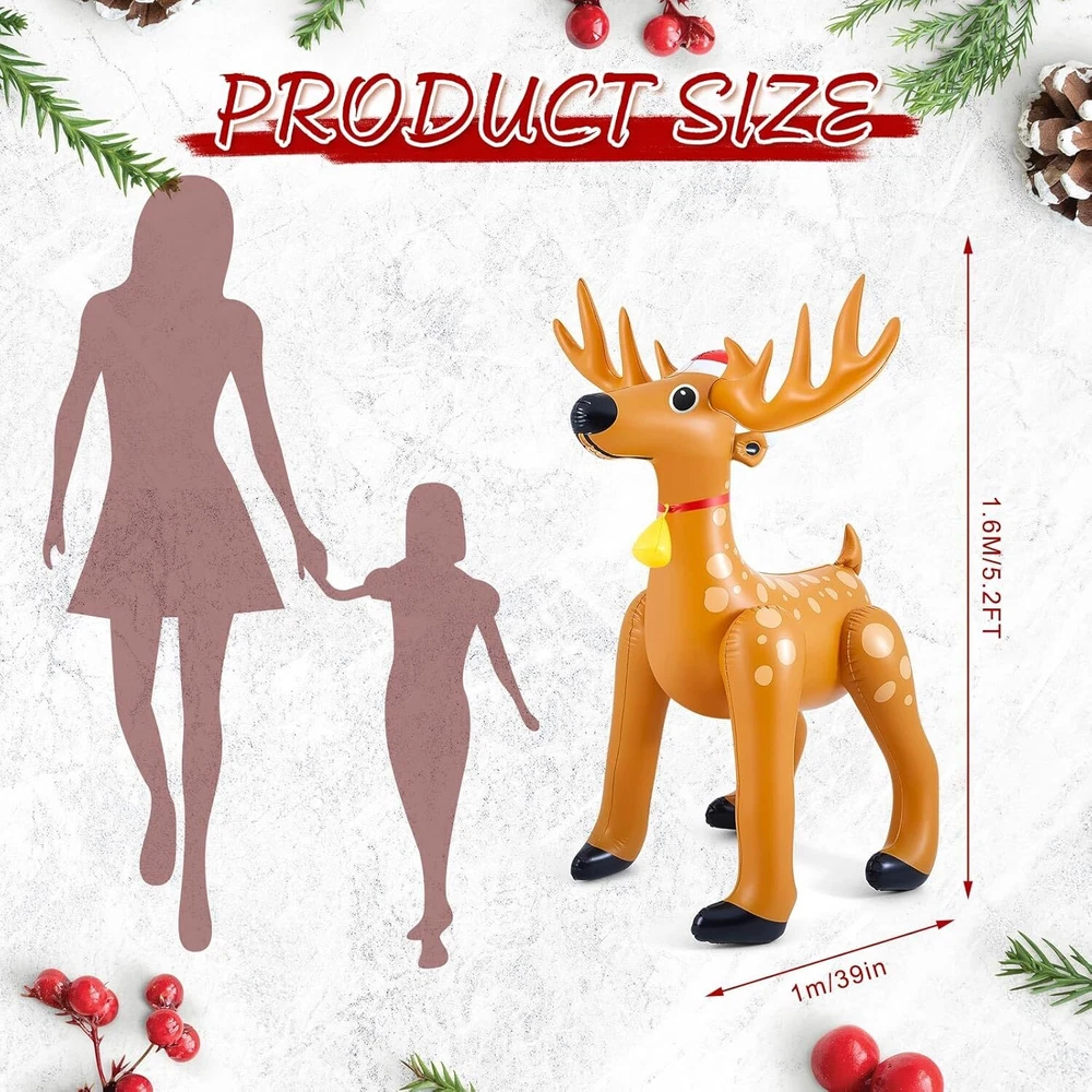 1 Pcs 5.52 FT Giant Christmas Reindeer Animals Deer Inflatable Christmas Standing Reindeer Blow up Decorations for Holiday Outdoor Yard Lawn Gift Package Content: each package includes 1 Christmas deer inflatable animals for party safari; The nice set allows for versatile placement, be it at the entrance of your home or flanking your Christmas tree, amplifying the holiday spirit in every corner Quality Material for Long Term Use: our Christmas giant reindeer inflatable is made from quality PVC material, ensuring durability and longevity; The material is resistant to wear and tear, providing you with a Christmas decoration that will add cheer to your holidays for many seasons to come Impressive Sizing for Maximum Impact: with dimensions reaching about 63 x 39 inches/ 1.6 x 1 meter, this Christmas inflatable reindeer is sure to make a striking statement; Its eye catching size helps to enhance your Christmas decor, creating an engaging and festive atmosphere Stylish Christmas Deer Design: featuring a delightful Christmas deer style, these Christmas reindeer inflatable decorations seamlessly blend into any holiday decor; The charming design is sure to create Christmas spirit, making them a favorite amongst guests and family members Easy to Use and Inflate: the usage method of our Christmas inflatable decorations is straightforward; Just remove the plug of the inflation port, use an air pump to inflate it to the appropriate size, and finally put the plug back; Within a few minutes, your festive decor is ready to impress