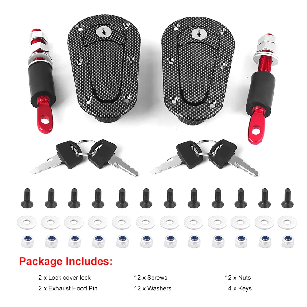 Product Description Features: Quick and flexible to lock and unlock Comes with necessary mounting hardware Designed to be fitted from above the panel Add the security with the lock built into the hood latch Specifications: Type: Hood Lock Color: Carbon Stripe Material: ABS Weight: 500g Application: Universal Package includes: 2 x Lock Cover Lock 2 x Exhaust Hood Pin 14 x Screws 14x Washers 14 x Nuts 4 x Keys About Us Payment Shipping Returns Contact Us Welcome to our store! Our aim is to offer our clients items with high quality and fast delivery, also our price will be reasonable. We supply many products including video game, health & beauty, phone accessories, computers accessories, camera & camcorder,car accessories, games, toys & hobbies, jewelry, antique & craftwork. Excellent customer service and a reliable credit standing is our tenet. We accept all verified payments from ebay. Orders will be shipped after receiving cleared payment. We ship most of our orders within 24 hours, and may up to 48 hours. If you want faster shipping way. Please contact us before making payment. Sometimes due to problems with our transportation company system, your shipping information may be delayed to update. We recommend that you try again after 3-4 days. If you still haven't checked the shipping information, you can contact us by ebay message. Always believe we can figure things out with communication, if it comes to return, the pacakge must be intact and the same as you receive. If you have any questions, please feel free to email our service specialists 24 Hours a Day, 7 Days a Week. We will reply you ASAP. Return/refund is accepted within 30 days after the buyer receives the item. NO exchange will be accepted after 30 days from the date when the item is received. Please contact us first before returning your product!!! If you have any questions, our Customer Service staffs welcome you to email us. We strive to answer all questions and resolve any problems as quickly as possible. We care about our valued customers, and will always try to help you. So if you have any problems, You can contact us 7*24, we will reply at the first time. About Us Welcome to our store! Our aim is to offer our clients items with high quality and fast delivery, also our price will be reasonable. We supply many products including video game, health & beauty, phone accessories, computers accessories, camera & camcorder,car accessories, games, toys & hobbies, jewelry, antique & craftwork. Excellent customer service and a reliable credit standing is our tenet. Payment We accept all verified payments from ebay. Orders will be shipped after receiving cleared payment. Shipping We ship most of our orders within 24 hours, and may up to 48 hours. If you want faster shipping way. Please contact us before making payment. Sometimes due to problems with our transportation company system, your shipping information may be delayed to update. We recommend that you try again after 3-4 days. If you still haven't checked the shipping information, you can contact us by ebay message. Returns Always believe we can figure things out with communication, if it comes to return, the pacakge must be intact and the same as you receive. If you have any questions, please feel free to email our service specialists 24 Hours a Day, 7 Days a Week. We will reply you ASAP. Return/refund is accepted within 30 days after the buyer receives the item. NO exchange will be accepted after 30 days from the date when the item is received. Please contact us first before returning your product!!! Contact Us If you have any questions, our Customer Service staffs welcome you to email us. We strive to answer all questions and resolve any problems as quickly as possible. We care about our valued customers, and will always try to help you. So if you have any problems, You can contact us 7*24, we will reply at the first time. powered by