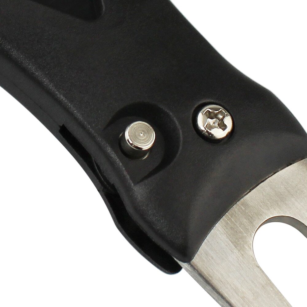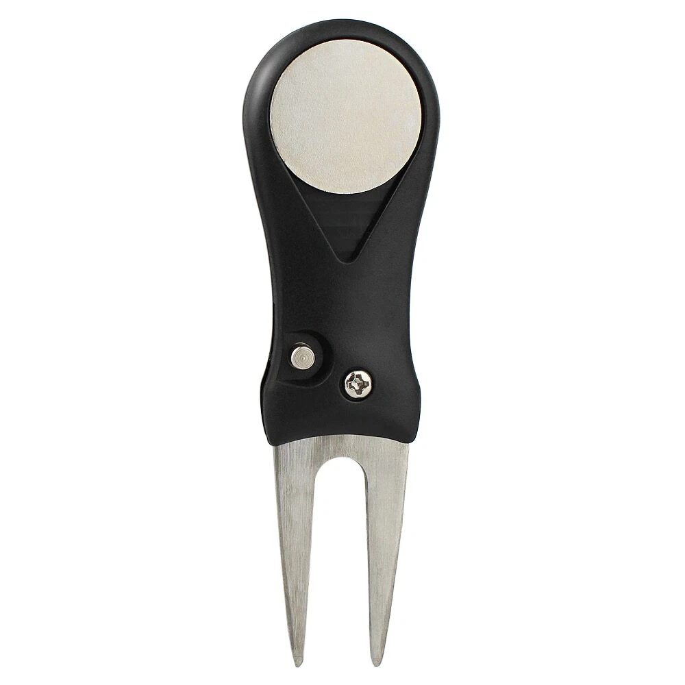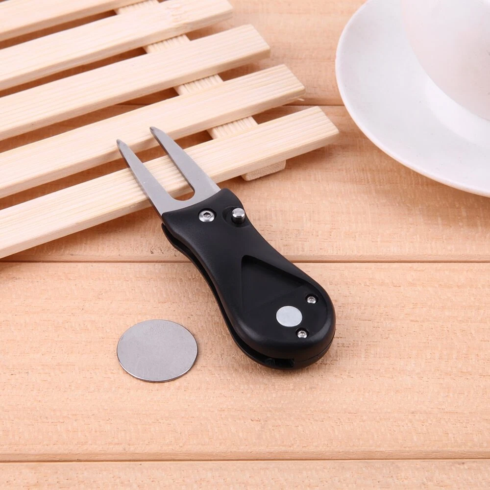 Features: Ball mark, magnet adsorption, easy to take Repair fork spring set, it is convenient to open and close Small volume, light weight, easy to carry Purpose: repair the turf and mark the position of the ball Specifications: Product name: golf repair fork Material: ABS + zinc alloy Color: black Size: about 7cm/2.76in(fold), 11cm/4.33in(unfold; mark iron ring: 2.5cm/0.98in Weight: 42g Packaging: yellow box packing Package include: 1 * Golf Repair Fork