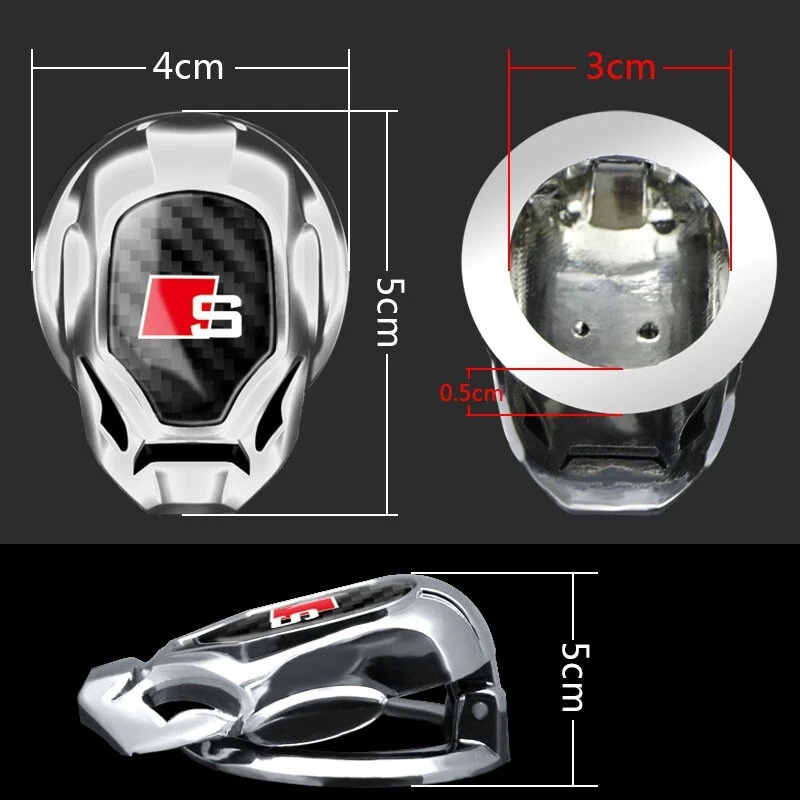 !!!! PLEASE LEAVE A NOTE WHICH COLOR YOU WANT US TO SHIP !!!! Zink Alloy Engine Ignition Push Start Button Cover S LINE Logo For Audi A4 A5 A7 A8 Q3 Q5 Q7 Q8 Including : 1 peace Material : Zink Alloy !!!! PLEASE LEAVE A NOTE WHICH COLOR YOU WANT US TO SHIP !!!! COLOR : 1. Silver with logo as on picture 2. Black with logo as on picture !!!! PLEASE LEAVE A NOTE WHICH COLOR YOU WANT US TO SHIP !!!! Dimensions : 4.0 X 5.0 cm Please find attached pictures with dimensions Item Weight : 40 g Installation : Very easy No drilling needed High quality 3M Self Adhesive Easy Removeable without any residual, never harm the painting of your car. Packaging : Packed in Foam bag Quality guaranteed How to use: 1.Clean the installation area with a damp cloth to remove grease and dust, if the car is newly waxed, use some alcohol to remove excess wax. 2.Tear off the cover of the back adhesive and heat the adhesive with a hair dryer. 3.Stick the decal on the surface. 4.Finish Note: The product will set properly 24 hours after attaching. During this period, do not move the product. If removing product, please remove slowly to avoid damage the car surface.