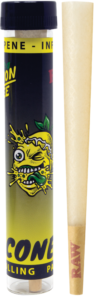 RAW Lemon Tree Terpene Infused King Size Cone Pre-rolled Cone Elevate your next smoke session with a RAW Lemon Tree Terpene Infused King Size Cone. This collaboration between RAW and Lemon Tree has created an expertly enhanced pre-rolled cone infused with Lemon Tree terpenes. Just load the cone with your favorite blend of legal smoking herbs and light to experience a burst of citrus aroma. Resealable glass container includes one cone