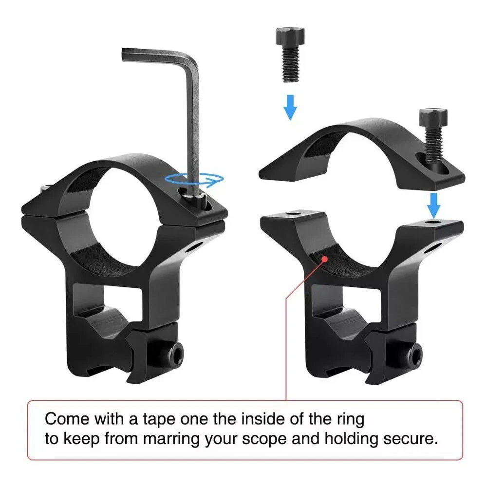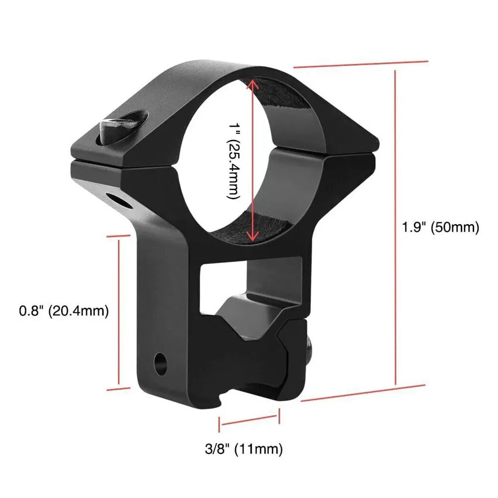 Red Green 4 Reticles Sight Scope with Cantilever 1"/30mm Ring Mount&Red Laser US 42.29 USD Free shipping Red Green Dot Sight Tactical Holographic Reflex Scope 20 mm Picatinny Rail Mount 17.91 USD 3.5 USD 4PCS 1'' inch Low+High Profile Scope Ring Mount for 20mm Picatinny/11mm Dovetail 14.99 USD Free shipping Tactical Barrel Mount Rail Fits Remington Winchester Mossberg 1" 1 inch dia 0.01 USD Free shipping Tactical Reflex 3 MOA Red Dot Sight Scope with Red Laser & 25.4/30mm Ring Mount 9.99 USD Free shipping 3 Slots Picatinny Rail Section Aluminum w/Tactical 45 Degree Offset 5 Slot Mount 12.99 USD Free shipping Tri-rail/Quick Release 25.4/30mm Ring 21mm Picatinny Rail High Profile Mount 8.99 USD Free shipping 2PCS Laser /Light/Scope Ring Mount - Tri-rail & 30mm + 1" Reducer Insert 14.39 USD Free shipping Tactical PEPR 1"&30mm Scope Cantilever Mount /25.4mm Ring Low Profile Mount 10.99 USD Free shipping Tactical 1x 40mm Red Green Dot Sight Scope+3-Slot Quick Release Detach QD Mount 25.19 USD Free shipping Tactical Compact Red Dot Laser Low Profile+45 Degree 5 Slot Picatinny Mount 23.39 USD Free shipping Tactical Green Laser Sight Dot Scope Rail with Switch - Barrel Mounts Hunting 19.79 USD Free shipping Scope Mount Ring 1 Inch/30mm Medium Low Profile for 20mm Picatinny Weaver Rail 8.99 USD Free shipping 4pcs Low Profile 25.4mm Scope Rings 20mm Picatinny Weaver Rail Mount Hunting 12.59 USD Free shipping 2PCS 1" High 3 Slots Scope Bracket Riser Mount for Optics Red Dot Sight Black 14.39 USD Free shipping 2PCS Mossberg 500 12GA 1" Tube Mount with 25.4mm Scope Ring Low Profile Mount 18.89 USD Free shipping 2pcs Tactical 12GA Rail Picatinny Mounts 1 Inch Barrel Mount Tube Rail US 12.59 USD Free shipping Quick Release 3Slot/Slim 3 Slot Riser Mount Fit 20mm Picatinny Rail for Red Dot 8.99 USD Free shipping Features Durable all metal construction Lightweight, made of aluminum with a black anodized matte finish Easy installation (tool included) Compatible with most lasers, scopes, and flashlights Fabric liner for increased friction and protection of your accessories Fits 11mm (3/8") rails Specifications High Profile Dimensions: 2" (height) x 1.6" (width) x 15mm (depth) Low Profile Dimensions: Width 1.75" Height 1.5" Thickness 15mm High Profile Weight: 37g (1.3 oz) per ring Low Profile Weight: 51g (1.8 oz) per ring Color: Black Material: Aluminum, Steel Ring Diameter: 1" Fits: 11 mm (3/8") rails Items Included 1pair 1" high profile ring mounts for 11mm dovetail rails 1pair 1" Low profile ring mounts for 11mm dovetail rails 2x Allen key