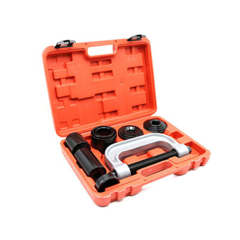 1 Set Ball Joint Remover Kit 4 IN 1 Ball Joint Service Kit New Auto Press 4WD 4 Wheel Drive Adapters Adaptor Hand Tool Set Description: This tool kit is designed for use on most cars and Light trucks that have press-fit type ball joints, without the need to remove the control arm from the vehicle. Features: 1. 4 in 1, 4 wheel drive ball joint remover/installer kit perfect for 4WD ball joint service/repair. 2. Excellent for removal and installation of press-fit parts such as ball joints. 3. Universal joints and truck brake anchor pins. 4. It will also remove rusted and corroded parts. 5. Carrying case for easy transportation and storage. Specifications: Material: Carbon Steel Size: As the picture show Package Weight: 7300g Quantity: 9pcs + case 3 Receiving Tubes Sizes: 2-3/4" x 3" 2-1/4" x 2-1/2" 1-3/4" x 2" Package Included: "C" frame press "C" frame screw Removal Adaptor Installation Adaptor Installation Cups Removal Cups Receiving Tubes (Carrying Case) Note: Please allow 1-3cm error due to manual measurement. Thanks for your understanding.