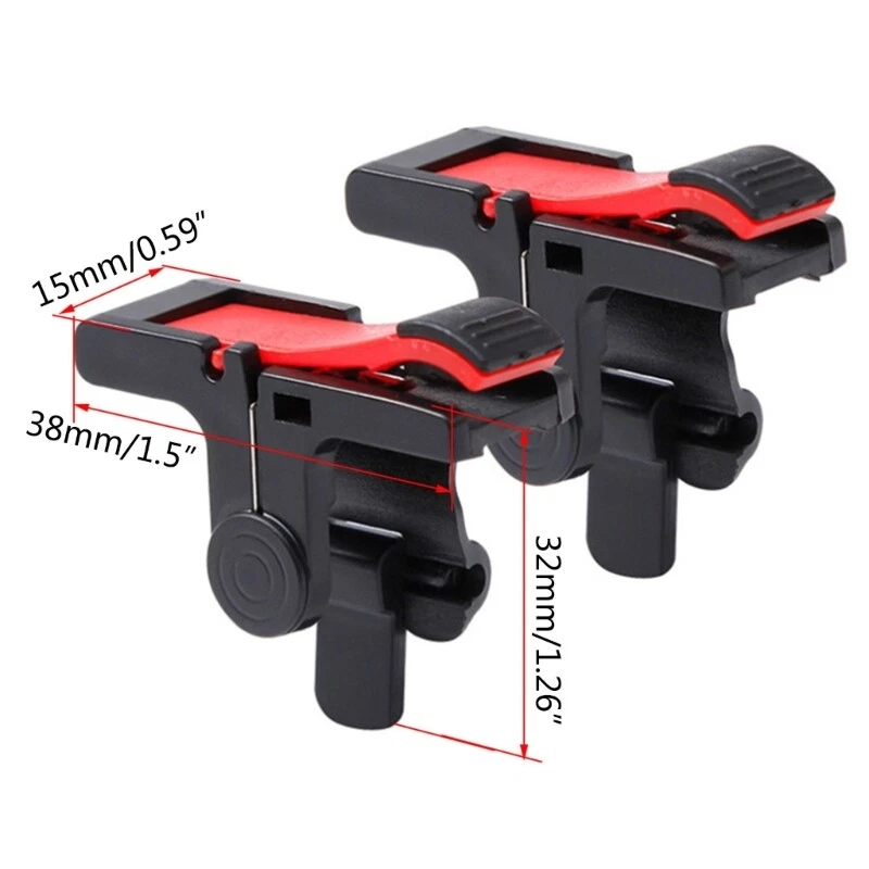 1 Set Mobile Game Controller Gamepad Trigger Aim Button Joystick for Phone Features: Accurate control, fit your fingers and operate more comfortably. No need to lock the screen, tap to photo, feel. buckle and pressure, stable and not loose. Four-finger linkage, step faster. Adjustable buckle, strong compatibility, suitable for all kinds of mobile phones. Specifications: ABS+Aluminum Alloy Size:Approx.5x4x3cm/1.97x1.57x1.18inches Color:Black Package Includes: 1x Mobile Gamepad note: 1.Please allow 1-2cm errors due to manual measurement, make sure that you do not mind before you order. 2.Due to the difference between different monitors, the picture may not reflect the actual color of the item.