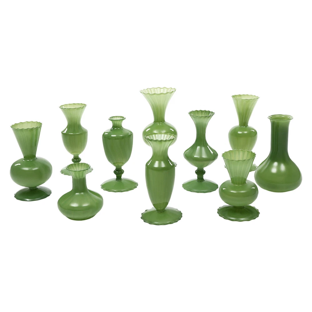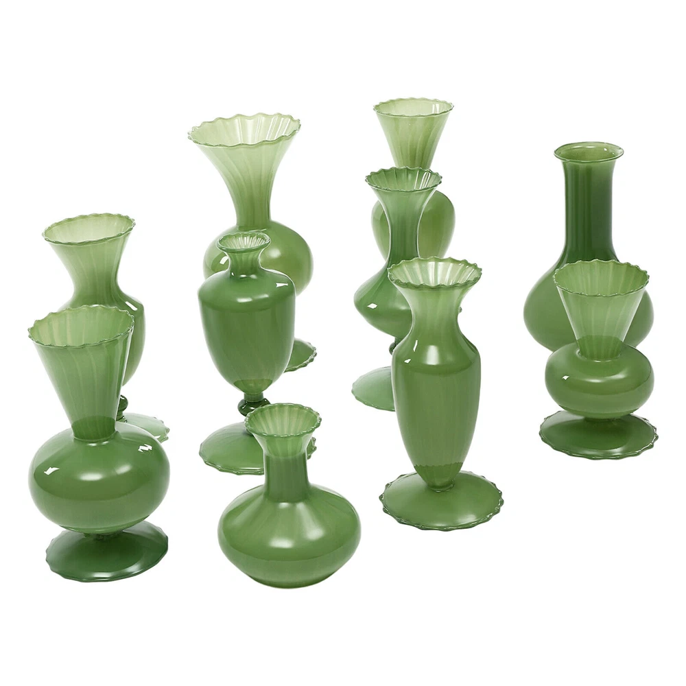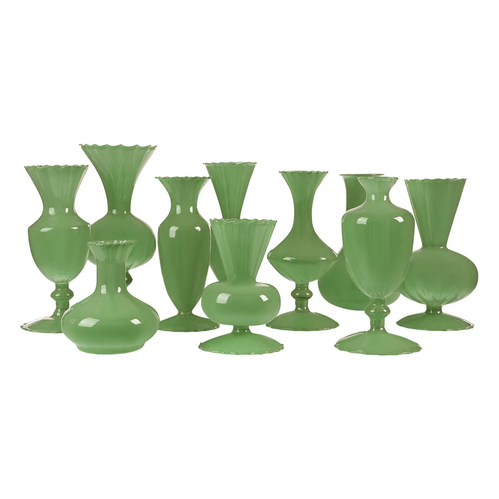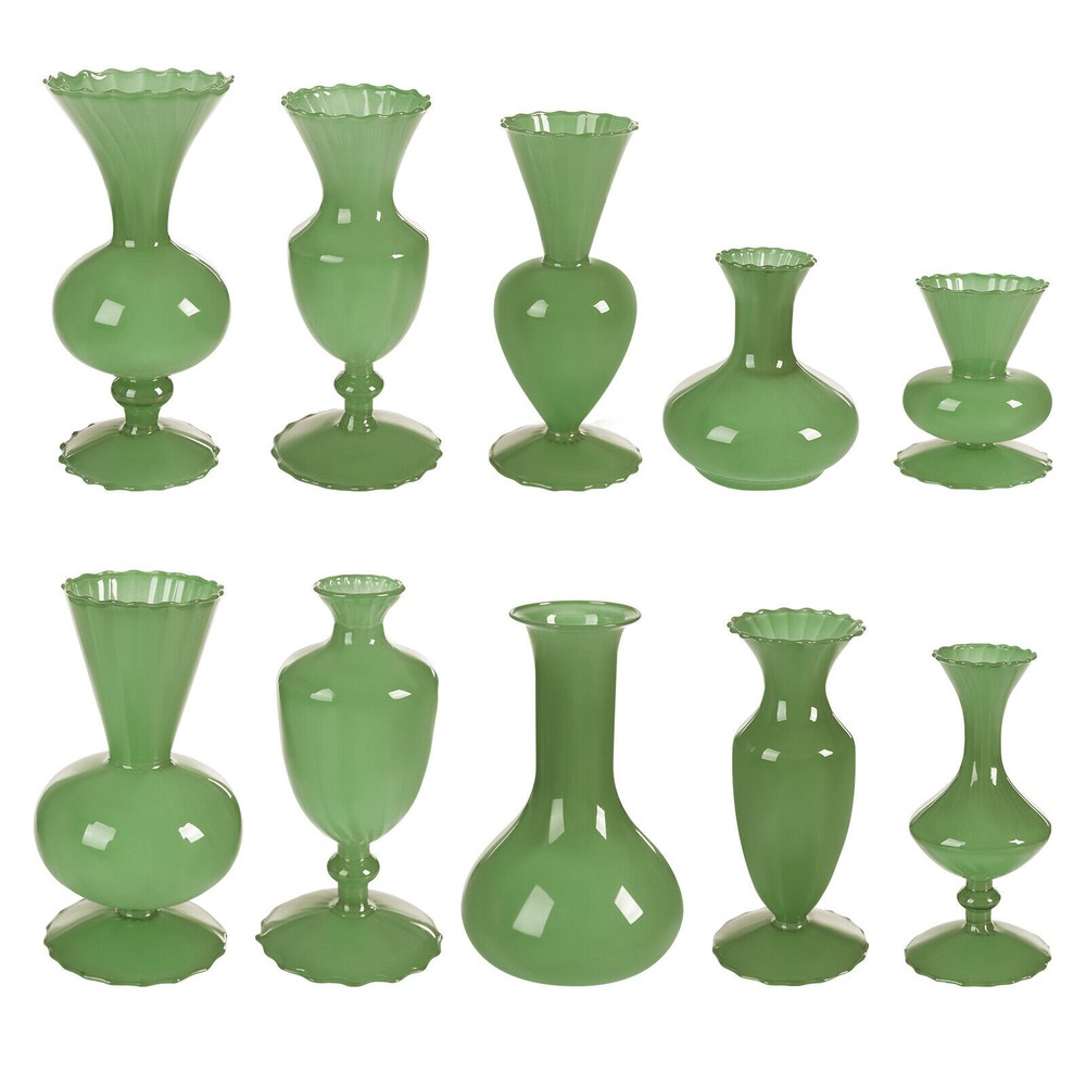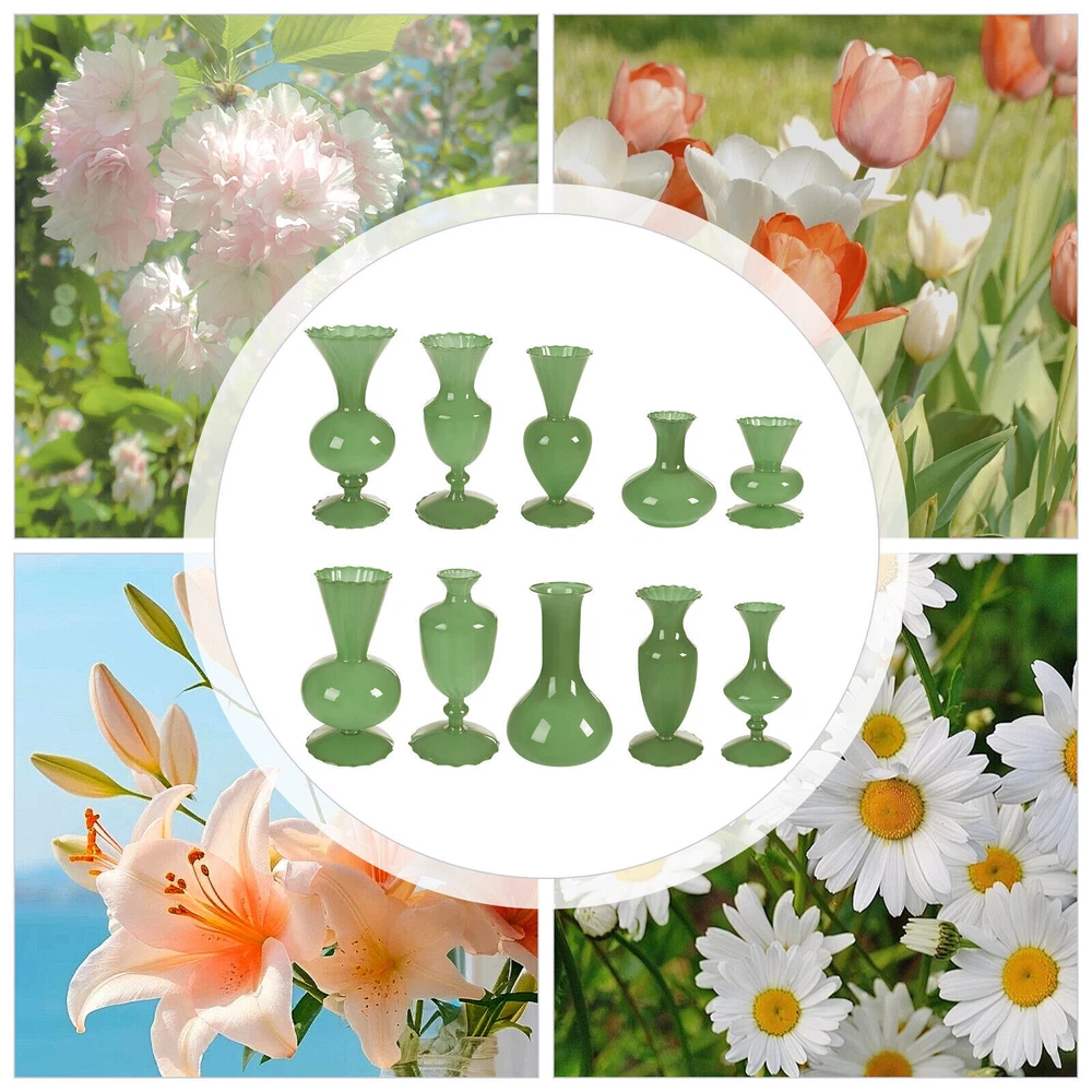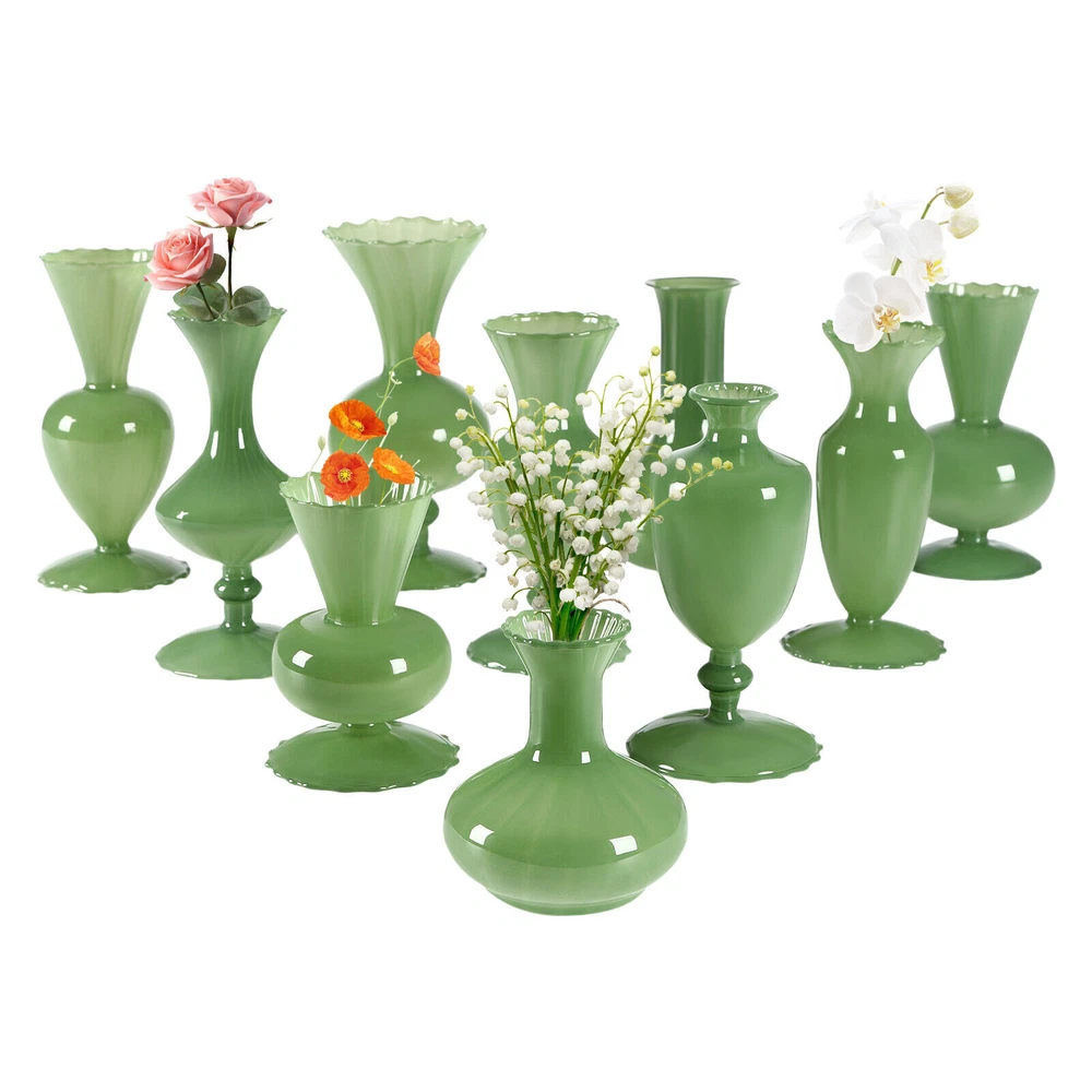 1 Set of 10 Mini Vases for Flowers - Ten Piece Small Glass Bud Vases - Green New Welcome Description Weddings, graduations, birthdays, etc. are all memorable events in our lives that will become our precious treasures. With this glass vases set, your wedding and other important events will be even more wonderful. Our vases are made of premium glass, so they can be used for a long time and accompany you through various stages. 10 different styles in sufficient quantity to meet your home decorating needs, adding a touch of elegance and beauty to your home. Key Features Build to Last: High-quality glass makes the product durable and solid, so it remains beautiful and practical for a longer time. Strong Stability: The solid material, reasonable structure, and stable base provide this item with a strong bearing capacity, so you can use it safely without worrying about the fracture. Diverse Styles: The 10 different shapes, sizes, and styles enrich your visual experience, create a personalized background, add brightness to a dull event, and become good home decoration. Wherever it is placed, it is a beautiful scenery. Nice Decorations: You can place this product at the top of the booth as an excellent decoration for special days, creating an elegant atmosphere, especially for weddings. You can also put it on the table to relax your mood. Even if it hasn’t artificial flowers on it, it is still a very elegant decoration! High Cost-effective: 10 Pcs allow you to use different items, such as flowers, artificial flowers, and vines, on other occasions to decorate them freely and repeatedly, promoting the unity of style and fully meeting your needs. Labor-saving Cleaning: The smooth surface and simple structure make it convenient for you to clean with a wet towel and water. Easy to Carry and Store: Its small size and lightweight( 4.41 lbs ) make it easy for you to store and carry them anywhere. Ideal Gift: With an attractive appearance, this product is used as a gift for family, friends, and lovers to make their home more atmospheric and festivals more meaningful. Protective Package: To prevent the product from being damaged and bumped during transportation, we packed it with foam and cartons to protect your products to the maximum extent possible. Details Round Corners: Compared with traditional square corners, an arc design can better care for your skin. Flared Mouth: The flared mouth of the vase is not only aesthetically pleasing but also makes it easier for you to insert flowers, artificial flowers, and other decorations. Application Match with artificial flowers and other items, this product can be used in homes, restaurants, terraces, coffee shops, hotels, balconies, bars, clubs, Spa, candlelight dinners, holiday dinners, weddings, the background decoration of the studio, as well as any other special activities you would like to decorate. Specification Color: Green Style: Modern Material: Glass Assembly Required: No Mount Type: Free Standing Number of Items: 10 Product Size(D*H): 11*9.5cm/4.33*3.74in, 9*17cm/3.54*6.69in, 9*16.5cm/3.54*6.5in, 9*17.5cm/3.54*6.89in, 9*17.5cm/3.54*6.89in, 9*7cm/3.54*2.76in, 12*18.5cm/4.72*7.28in, 9*19cm/3.54*7.48in, 9.3*20cm/3.66*7.87in, 10*22cm/3.94*8.66in Net Weight: 2kg/4.41lbs Gross Weight: 2.3kg/5.07lbs Package Size: 55*45*15.5cm/21.65*17.72*6.1in Items included 10* Glass Vases Notes Please note that flowers and other decorations are not included. Please use a soft cloth to clean and dry it. Please do not use harsh chemicals or abrasives. It is better to add some rocks or floral foam to the inside to make the item more stable. For better results, we recommend using a small bouquet. Please pay attention to the size details, it may be smaller than you expect. Please check the size of our vases before purchasing a bouquet to prevent buying a larger or smaller bouquet. Please allow the slight color difference caused by the shooting light and 1-3 cm error due to manual measurement, and make sure you do not mind before ordering. welcome Payment Delivery details Terms of sales About us Contact us Payment We accept ebay payment 。 Fees such as import duties, taxes are not included in the item price or shipping costs. These charges are the buyer's responsibility. Delivery details Shipping: 2-9 working days to: USA Terms of sales We maintain high standards of excellence and strive for hundred percent customer satisfaction. Feedback is very important to us. We hope that you contact us immediately before you give neutral or negative feedback, so that we can address your concerns. It is impossible to address issues if we do not know about them! About us Your satis faction is our ultimate goal. We work hard to earn your trust and future business. Our certified technicians have tested each item before shipping. The unit comes with 1 year limited warranty on all manufacturing defects. a) If you receive a defective item, you may return it or ask for a discount. Please contact us within 14 days after you receive the package. b) What you returned must be intact and in its original packaging as re? u. Customer is responsible for shipping costs of the returned item. c) We will cover the cost of shipping back t with the shipping rate indicated in the registration page. We will send you a new unit or refund the full payment you paid. Thank you. Contact us Business Hour Business Hour: Monday To Friday: 8:30 AM to 5:00 PM (Beijing China time) Due to time zones, our reply to your questions may not be immediately. But within above working time, we will reply your email within 24 hours. If it's non-workdays, please kindly be patient and wait till Monday. Please contact us with ebay message. Please feel free to contact us if you have any questions. Monday To Friday: 8:30 AM to 5:00 PM (Beijing China time) Due to time zones, our reply to your questions may not be immediately. But within above working time, we will reply your email within 24 hours. If it's non-workdays, please kindly be p