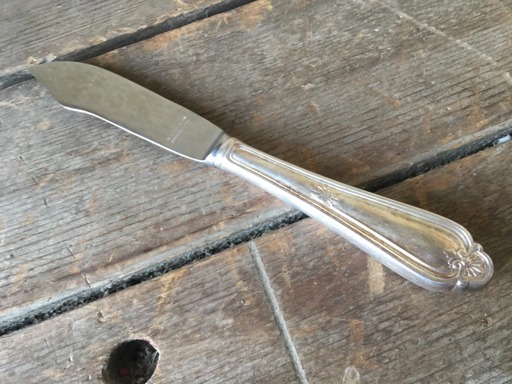 1 Solid Fish Knife Reed Barton Corsican 1926 Plumes Silverplate 82108 Silver Plate •Piece: Solid Fish Knife •Size: 8 1/8" •Quantity: 1 •Manufacturer: Reed & Barton •Maker's Mark/Signature: Reed Barton Mirrorstele on the Blade •Pattern: Corsican •Color: Silver Plate Silverplate •Country of Origin: ? •Material: Silverplate Silver Plate •Condition: Good to Very Good. May have some minor wear. Needs polishing. •Pattern Attributes: Plumes •Style Number: 1926 82108 RPSCOR •Years Manufactured: 1926 and most likely discontinued Shelf: i