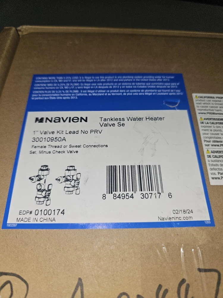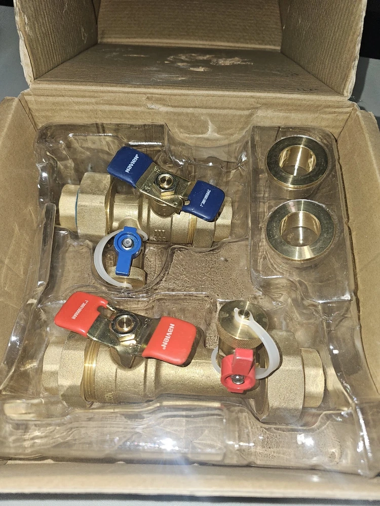 1" Tankless Water Heater Isolation Valve Kit - Navien Bosch Rheem, Threaded. Shipped with USPS Ground Advantage.