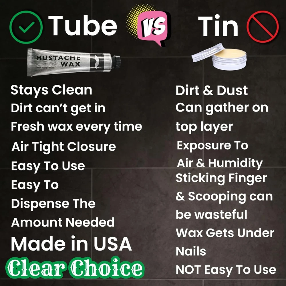MUSTACHE WAX: Style your mustache, sideburns, beard and eyebrows and keep all unruly and stray hair in place. STRONG HOLD: Ours excellent quality water-based formula is food and skin care grade product. Sulfate and paraben free formula is ideal for twisting and creating the perfect handlebars mustache style. Keeping unruly eyebrows in place and taming wild beards and sideburns. Wax color is white, so no matter your hair colors is, you can use it, and dries clear. Washes out with water. TUBE vs TIN: Every time you open a tin can or jar, air and humidity and dust may get in. Tubes are ideal to keep products fresh so they last longer. They are easier to use because you can always see exactly how much you get out of tube, instead of sticking your fingers in product, that is wasteful and not very hygienic. They are also great if you are sharing the wax with someone else! Tubes are also easy to pack, TSA APPROVED & travel friendly, great for gym bag, locker and keeping one in the car for quick touch ups. Tubes are always a clear choice for everyone! EASY & SIMPLE TO USE: Just squeeze a desired amount, based on the amount of hair you are styling, rub between thumb and index finger, when wax distributed evenly, start styling! Always start with minimum amount, and experience, you can always add more if needed and until the desired style is achieved! HAPPY STYLING! MADE IN USA: Premium quality, made right here in United States of America. 0.45 ounce Per tube, outstanding stache styling was for maintaining a strong hold style, with a very slight and soft, fresh lemon scent. Product Description