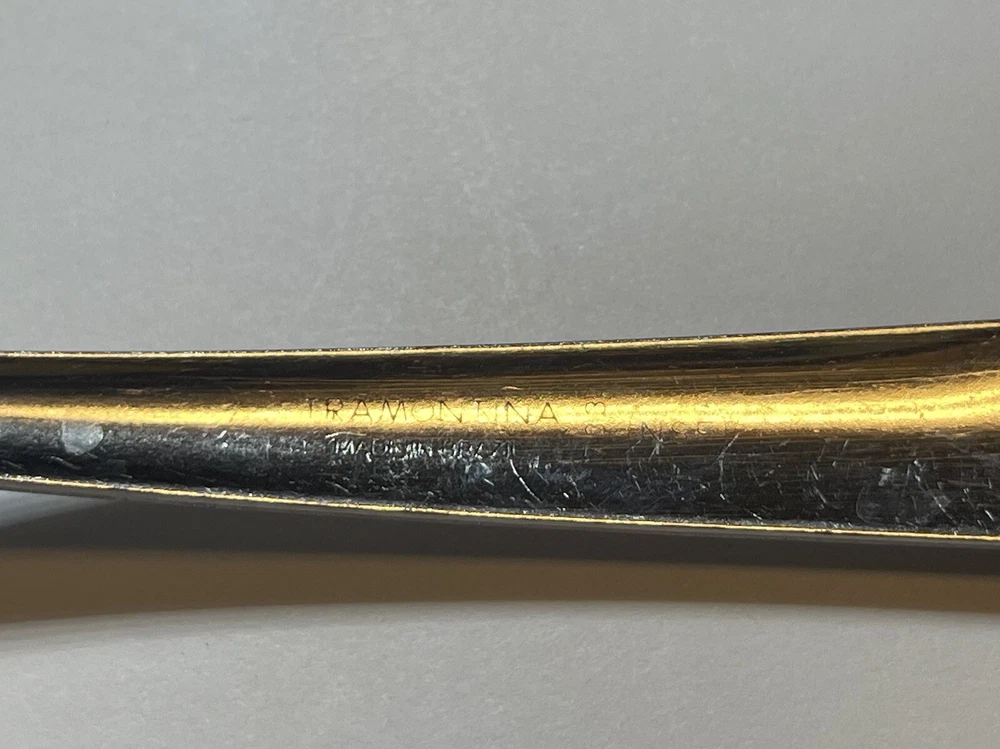 Listing is for (1) single spoon Brand : TRAMONTINA - Brazil Size : approx 7” Condition : PREOWNED — shows signs of use. NOT in mint/perfection condition. ** please refer to photos ** [[[ Disclaimer ]]] , FAQ , and important product information —- Please read below -⬇️ ** box / bag / packaging (if any shown) may come more damaged or flawed than what is shown at time of pictures due to storage and/or normal wear and tear. Please DO NOT purchase / submit an offer if you are picky or trying to purchase for collecting or “perfect” retail store gift-giving purposes. Please keep in mind that you are purchasing off eBay and if you’re looking for perfection to please seek elsewhere. All items are sold with the knowledge that the boxes / packaging may come more flawed than what is photographed. By submitting an offer and / or buying any product(s) listed you agree to the statement above and entire description / listing details. —- all items are photographed, packaged, and stored ready to be shipped so any additional photographs and/or measurements will not be given due to volume of product for sale. —- Shipped most economical way - if you require a specific method or way ( i.e. boxed, specially bagged etc. ) please reach out PRIOR to purchase and/or submitting an offer so the shipping method and/or price can be updated to accommodate your needs. -No returns -No refunds -No exchanges —- All items sold as-is. The best intent is done when looking over each piece/item for any imperfection(s) and to make sure they are noted somewhere within the description. Regardless you are agreeing to the shape they come in once offer has been submitted / item purchased. —- Please ask all questions before buying / submitting an offer. Thank you, have a wonderful day. H-1