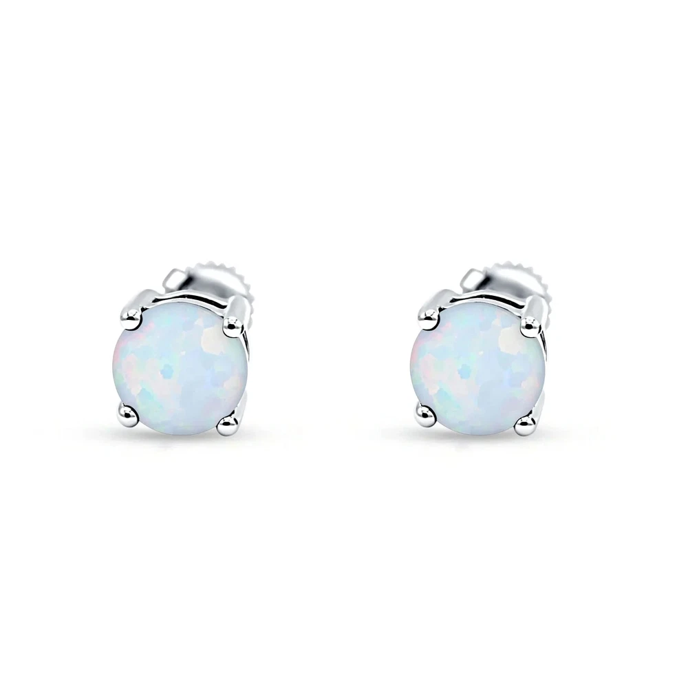 Classic Opal Stud Earrings w/Screw Backs Beautifully set in Solid Sterling Silver. Earrings measure 5.5mm each (1 ct. tw.) Encased in a beautiful gift box with bow. Shipping We ship next day. All items purchased on Friday will ship Monday (unless a holiday). Items can take longer than (Ebay time frame is generous). You can upgrade to Priority Ship (2-3 day delivery). Returns We have a 30 day no questions asked return policy. No RMA needed. All items and parts must be returned including packaging (gift box). Please include your user name and item number. We reserve the right to include a restocking fee. No upgraded shipping will be refunded.