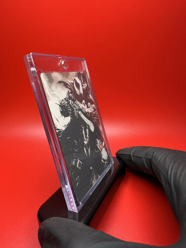 NEXUS MINT Presents - Spawn 1 oz .999 Fine Silver Card (1 of 1) We are thrilled to announce a significant enhancement to our image resolution for our laser engraving process. Our dedicated team has pushed the boundaries of innovation to deliver a product that exemplifies sophistication and precision like never before. Prepare to be amazed as our laser engraving technology now boasts an extremely high resolution, ensuring every intricate detail is captured with stunning clarity. Each Nexus Mint Silver Card is a masterpiece, meticulously crafted from the finest .999 pure silver and engraved with a level of detail that will leave you in awe. Introducing our latest innovation: the Reverse Side Boast with a stunning "Frost Silver finish". After extensive testing and development, we are proud to present the new frost texture that takes our craftsmanship to astonishing heights. This addition showcases our commitment to excellence and luxury. The reverse side is meticulously engraved with essential details, including the Nexus Mint logo, weight, purity, and an exclusive mintage. This unique feature ensures that each piece is truly a one-of-a-kind art piece. What sets our silver card apart is the innovative and advanced laser engraving process employed, representing the pinnacle of our craftsmanship. This cutting-edge technique allows us to capture and replicate images with unparalleled clarity and finesse, surpassing traditional methods and setting a new standard in precision engraving. Whether you're commemorating a special occasion, gifting a luxurious keepsake, or adding to your collection of precious metals, our Nexus Mint Silver Cards are the epitome of elegance and quality. Expect nothing less than perfection as you hold a piece of art in your hands, reflecting our commitment to excellence and your discerning taste. Elevate your collection today with the Nexus Mint .999 Fine Silver Cards – where every engraving tells a story of precision and beauty. Don't miss out on experiencing the pinnacle of laser-engraved silver cards. Order now and see the difference for yourself! Card Highlights: - Metal content: .999 Fine Silver - Approximate weight: 1 oz ( However, the weight of each card may vary slightly due to material being removed in the laser engraving process.) - Dimensions of the card: 2 1/2 x 3 1/2 - 0.02 Inches (0.51mm) thickness - Exclusive mintage: 1 - Packaging includes: Spawn 1 oz .999 Fine Silver Card (1 of 1) Ultra clear slab to handle and showcase the fine silver card (35pt card) (SEALED) One-Touch stand to display the fine silver card Trading card protectors Bubble wrapped At Nexus Mint our top priority is our customers. We are dedicated to ensuring that every customer service experience we offer is second to none. Our business is built on the premise of community engagement. We therefore thrive to promote and maintain an interactive environment that facilitates positive relationships with our customers. We hold our products to a high standard and each product must satisfy our quality assurance test. For us every single detail matter, from packaging to the production of the actual fine silver card. We aim to produce products that are innovative, timeless and of high quality. We're always happy to help! for questions regarding your order please don't hesitate to ask. Count on Nexus Mint for all your premium, fine silver and gold cards, bars and coins.